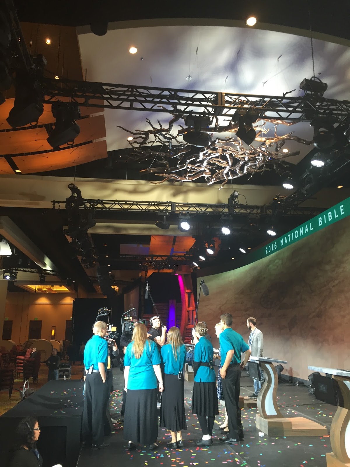 Josh flew down to Texas ahead of us, and was there Monday/Tuesday, training along with this group of alumni. (above) These nine have all competed together in the Bible Bee in past years, and they were selected as a group of “Commanders” to help with everything from registration to answering questions to directing contestants during the competition. From the stories + pictures Josh shared with us, it sounded like they all had an amazing time working together + sharing many fun times!