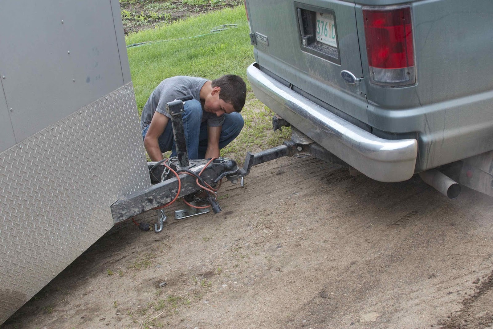 They then used the van to pull the trailer around the driveway at which point the bus backed up to the trailer, the hitch was taken off the van, it was put back on the bus, and finally the trailer hooked to the bus again.