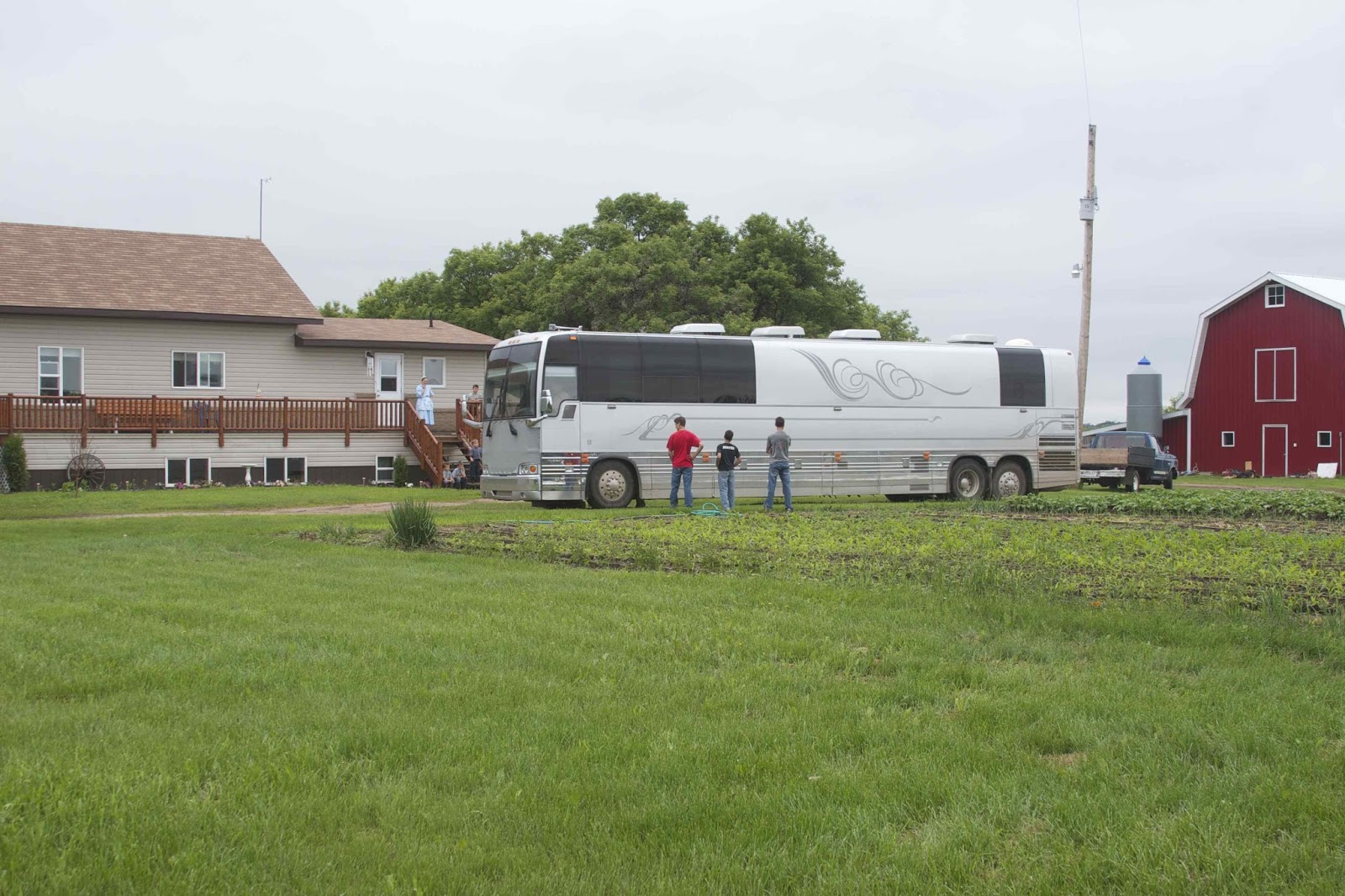 This is how the following true story happened: A family of 12 was joyfully motoring along a rather remote highway in a desolate part of the Saskatchewan countryside. It so happened on this morning that since father was suffering from a severe backache his son was taking a turn at the wheel of the 45 foot bus. This son does honor and respect his mother and seeks to make her happy. So on this lovely morning, when he saw a certain sign posted along the road he saw an opportunity to please his mother (who, by the way, does like to find really good food for her family whenever possible.) He asks mother if she would like eggs to which she replied “Yes”. He then turns around the entire bus and trailer and heads back to the sign which is at the end of a rather long lane. Mother feels a pit in her stomach as she sees a sharp curve in the very narrow lane. There is no house in sight, yet. By this time, it is too late to turn around so the son skillfully makes the turn and continues on to the house which is just around the corner. But alas, the driveway ends in a VERY short, narrow turnaround (it was too wet to turn around on the lawn). Mother goes to the house to purchase 10 dozen eggs though she wonders if she should get another 10 dozen to make this trip worth the time. By the time she gets back to the bus, the gravity of the situation is sinking in. They are at least 1 hour from any major town with no possibility of backing out and only the afore mentioned VERY narrow, short turnaround. The mother, who feels so very responsible, asks her children to join her in praying and then singing as she remembers that God works in the midst of praise. Her older sons and dear husband are having a rather lengthy discussion at to what their options are of getting this rig out of this bad situation. It is decided that they will drive just past the beginning of the turnaround, unhook the trailer, and then back into the rather wet, soggy grass beside the driveway. Does this solution sounds complicated? It was!