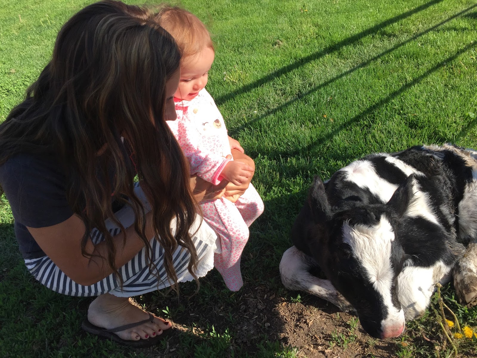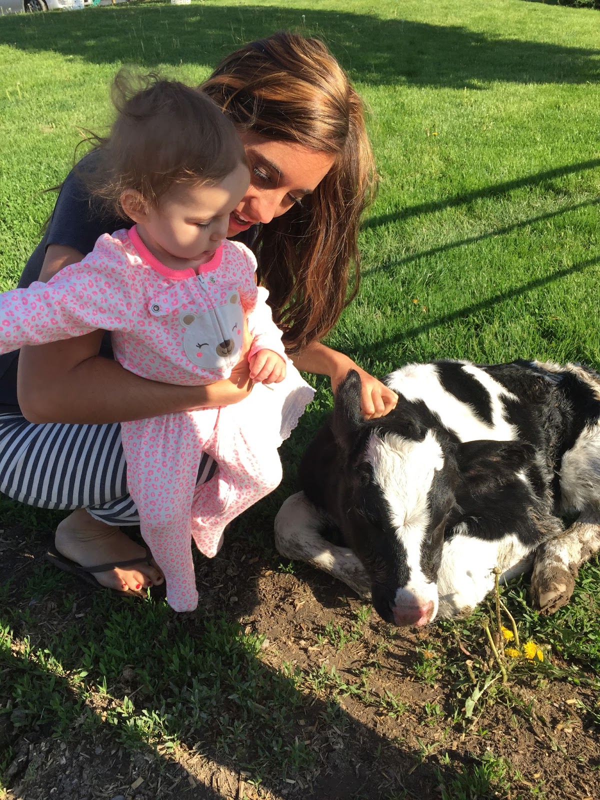 I took Rachel out one morning (still in her jammies!) to meet the newest arrival on the farm-a baby calf born just that morning.