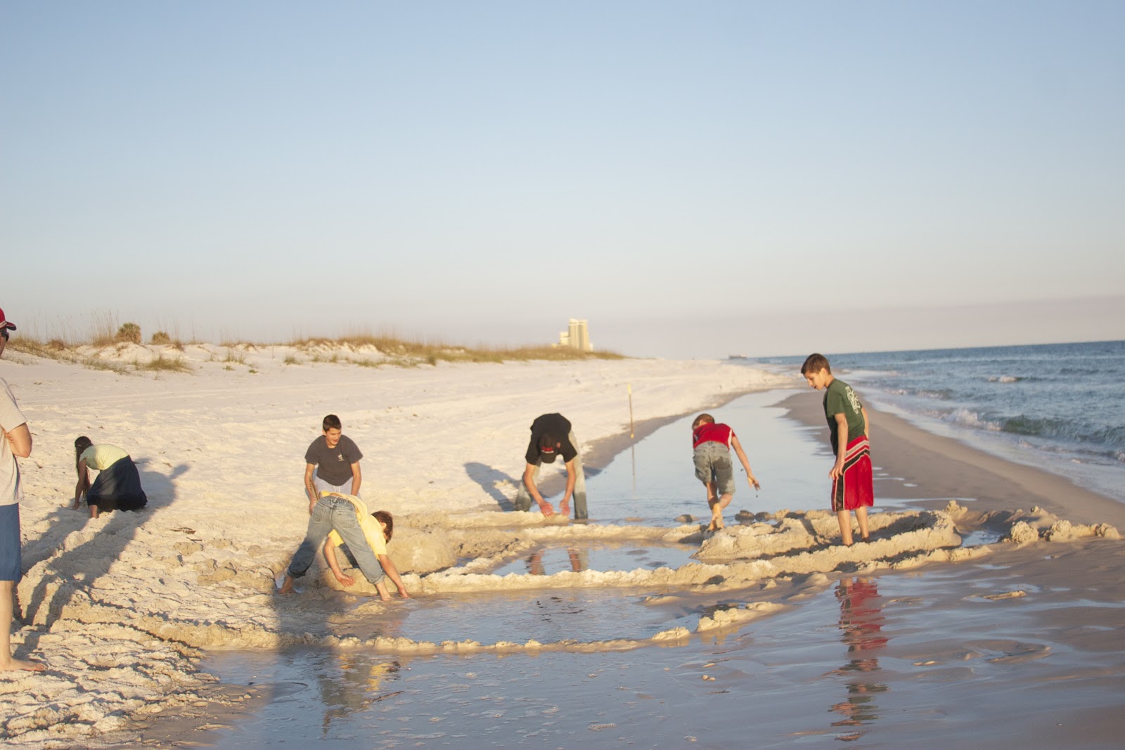 This looks fun! (And cold!) What is the creation all the boys are making in the sand? What a gorgeous beach!