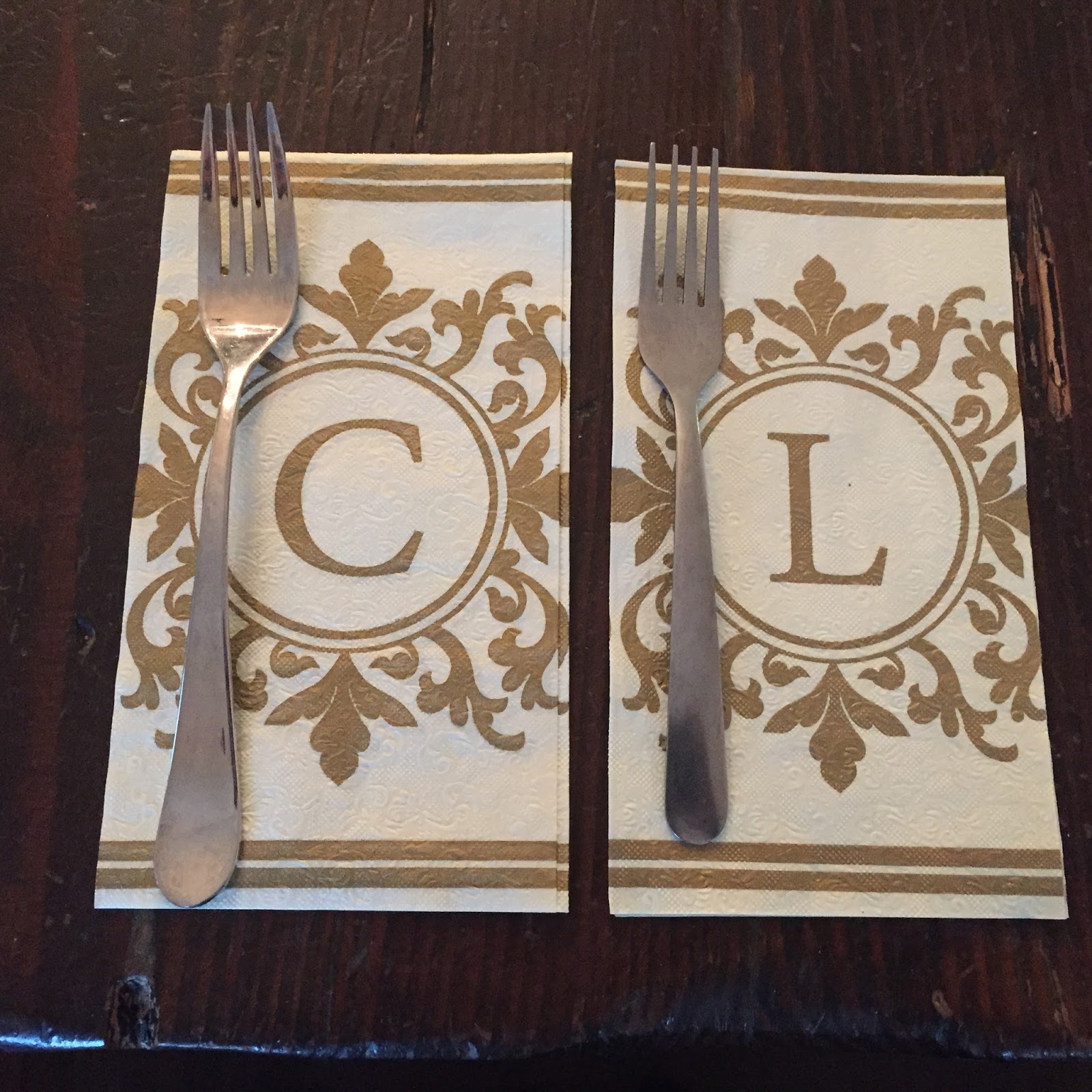 Napkins-C for Carson + L for Lina. (her full name is Carolina, but she mostly goes by “Lina”)