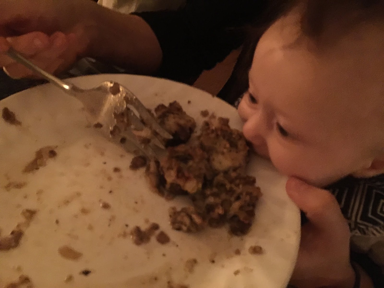 Unfortunately, Wallace was too young to partake of this feast but he enjoyed cutting his teeth on the side of the plate!