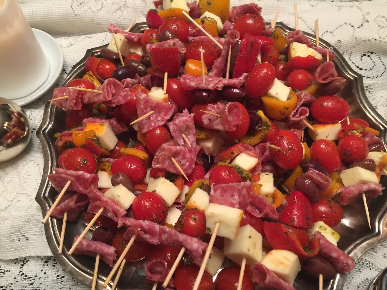 Our creative chef, Allison, put together scrumptious skewers with cherry tomatoes, white cheddar cheese, peppers, and salami.