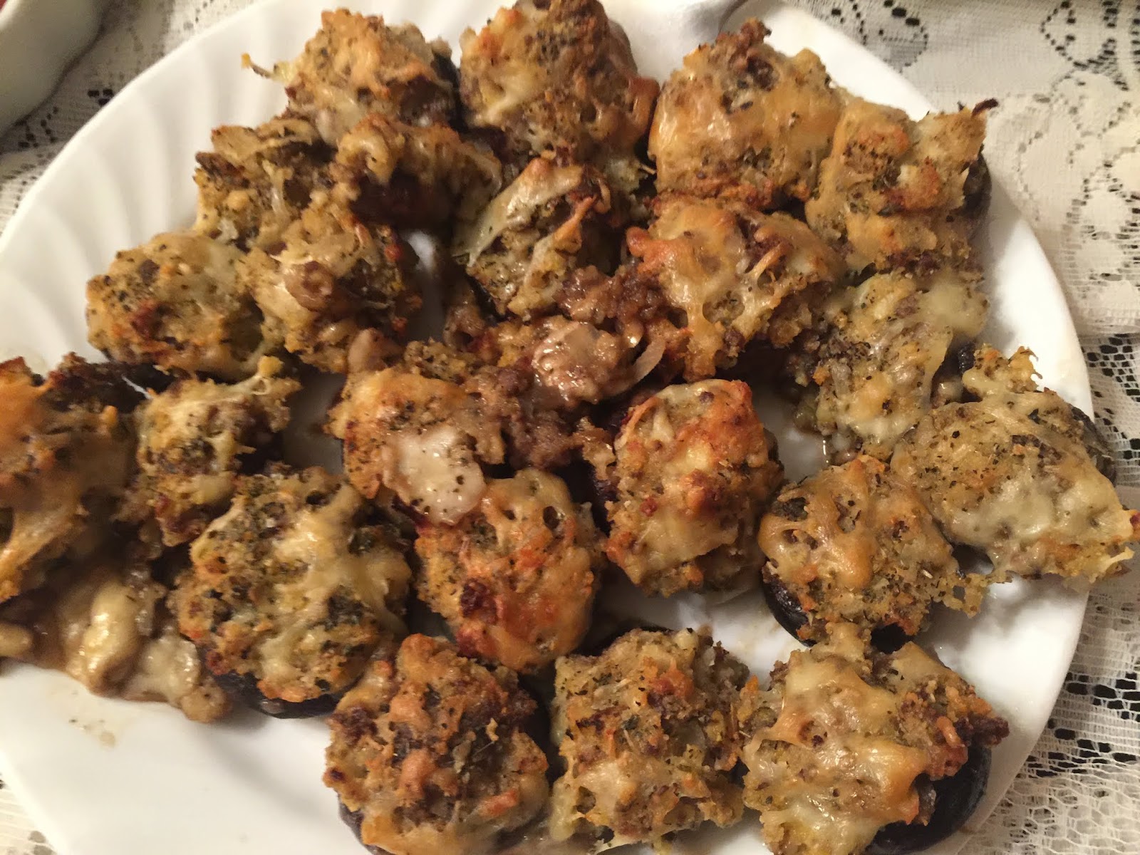 These savory bite sized mushrooms stuffed with sausage and cheese, made by Rebecca the budding chef, were SO delicious!