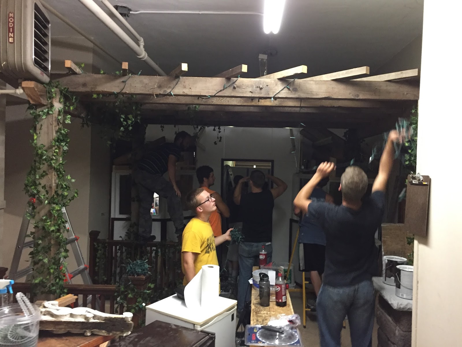 Getting everything ready beforehand. Our church was like a war zone-the place was turned upside down. The whole basement was transformed. We five oldest had a great time working together with our Purposed Life (singles/college/career aged young people) to make our part happen. (above picture)