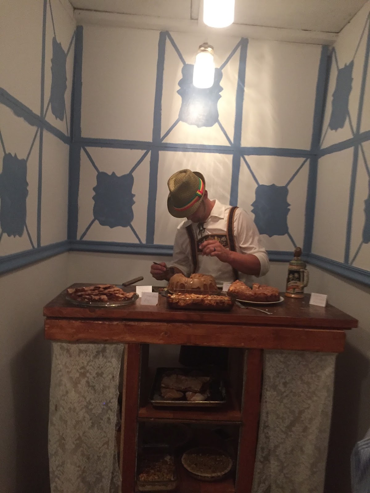 Here is the other side of that booth, with our class leaders’ wife. She sewed her own German costume!