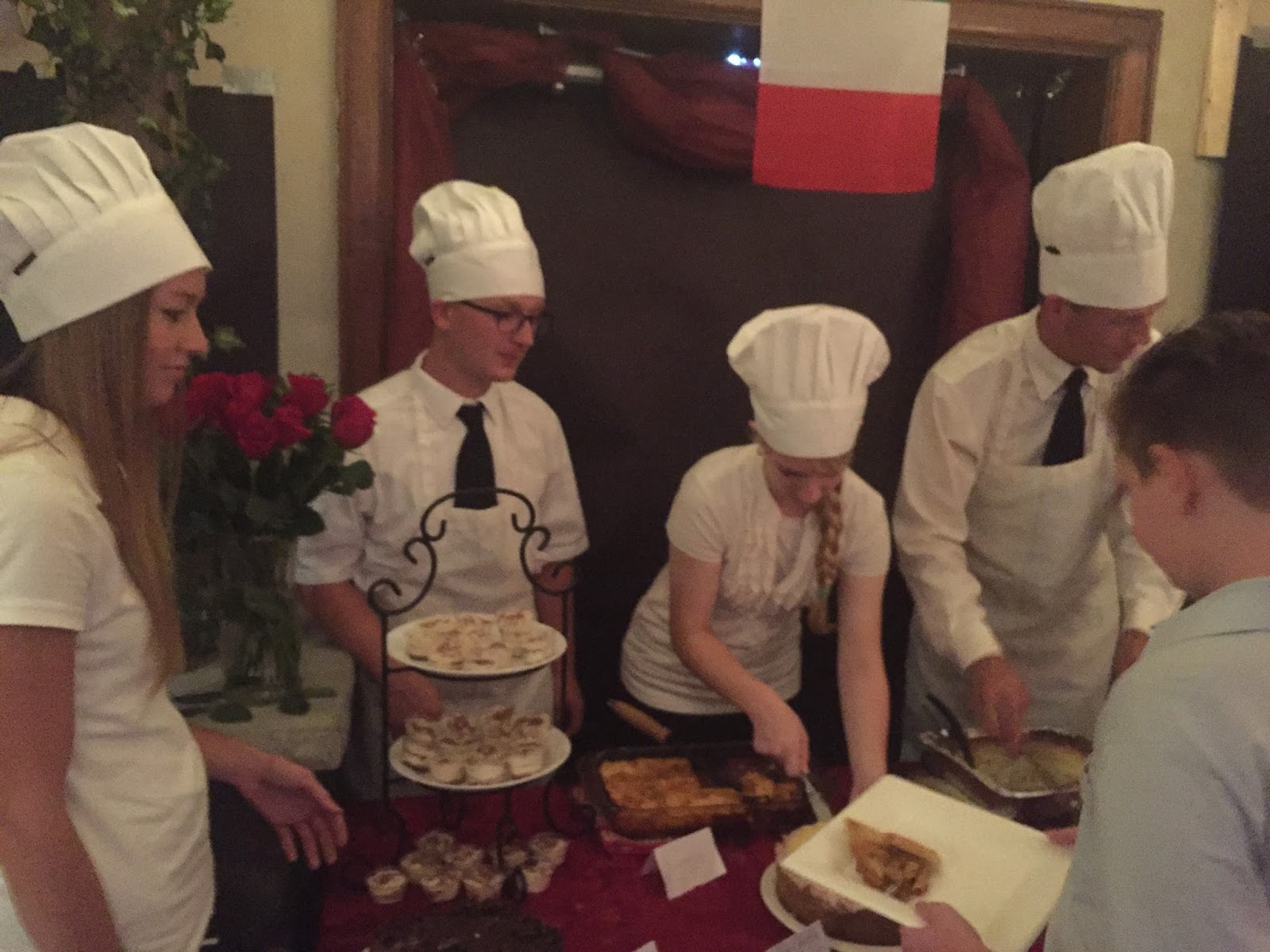 Food from Italy was served by four of our team members, dressed in black and white and wearing these stellar chef hats.