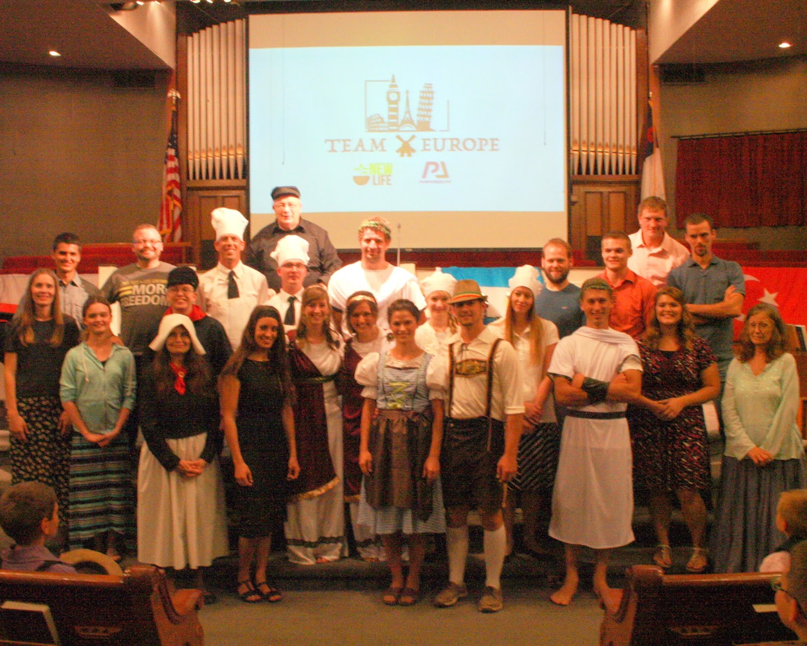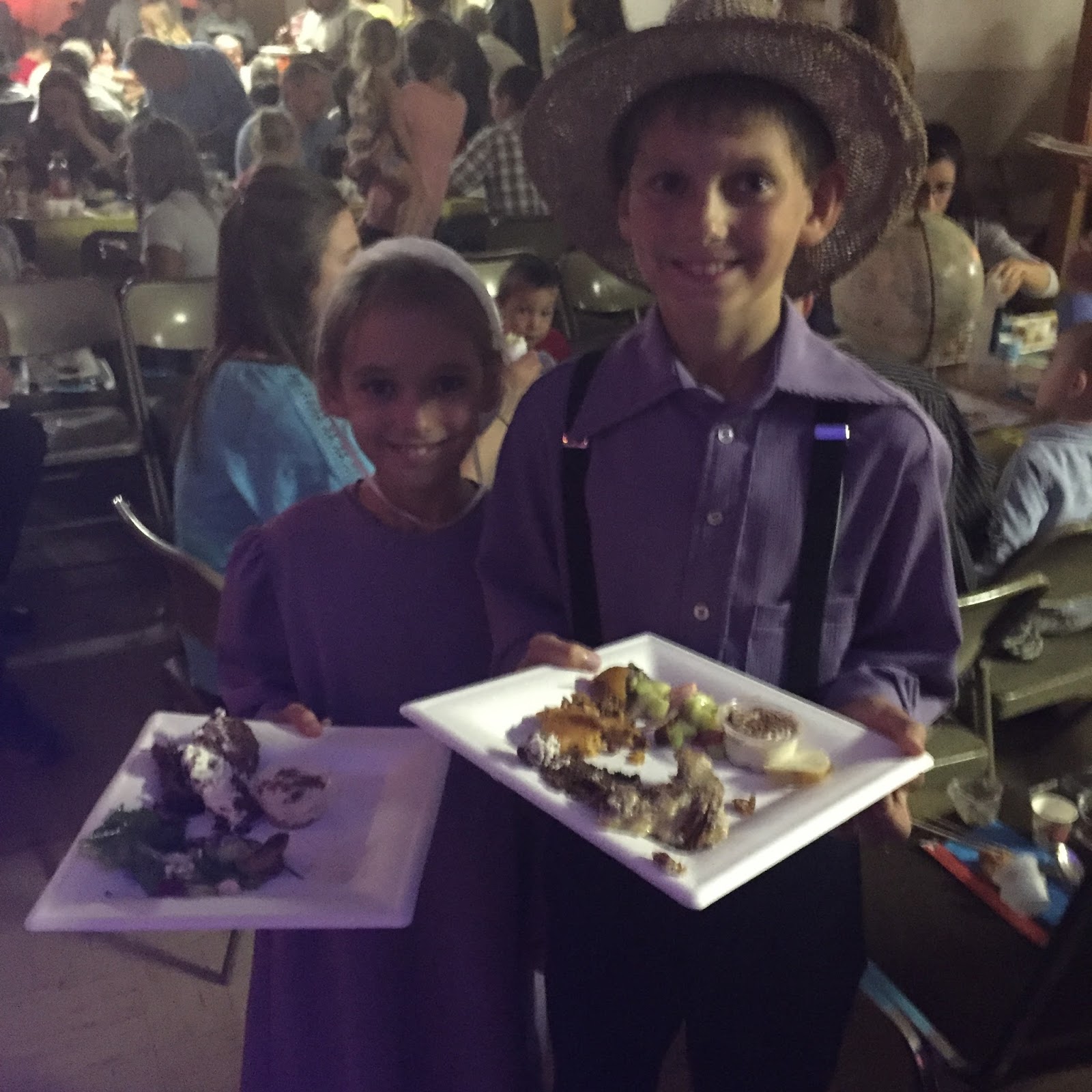 I could write for a loooong time to properly explain this, but I will stick with sharing a few pictures and telling enough details to give you the general idea. The lighting for the dinner was very dim, and I was in charge of the food for my teams’ continent, so there weren’t very many good pictures taken. Here are a few that I got on my phone and that I received from one of our church photographers. I also only have pictures of two continents, and those are the two that our family was involved with. My parents/younger sibilings’ small group class was in charge of Team America. They choose five different “areas” of the USA and then dressed in costume and made food from those areas. Hence the diversity in their costumes. =) They had a “deep south” Louisiana theme, which involved Civil War era clothing and food. Then they had a “Pennsylvania Amish” theme, which my parents + little sibilings did. (they were AMAZING) There was a ritzy California theme, and also a Texan chuckwagon and Indian theme.