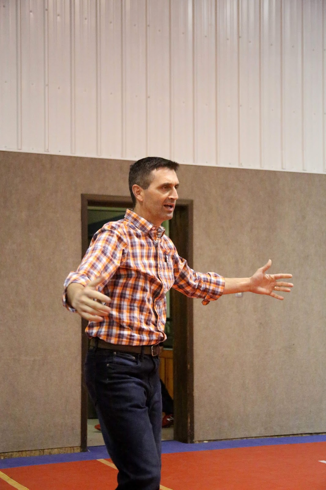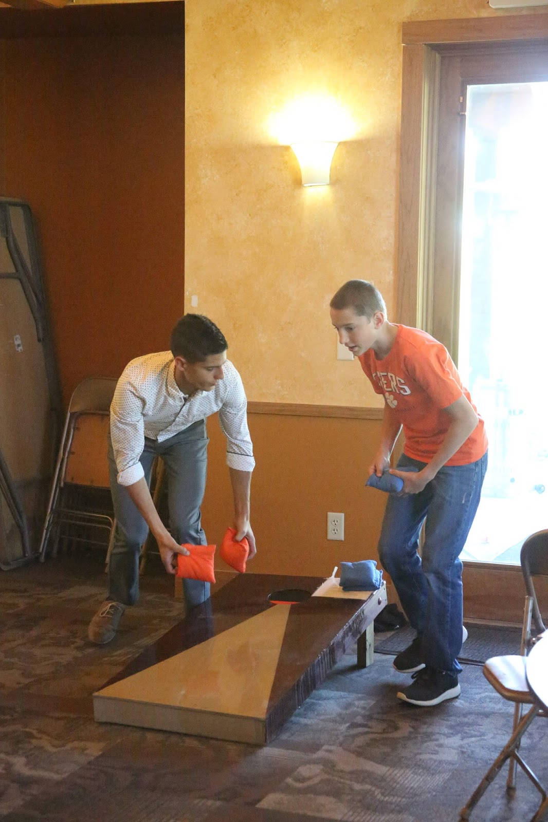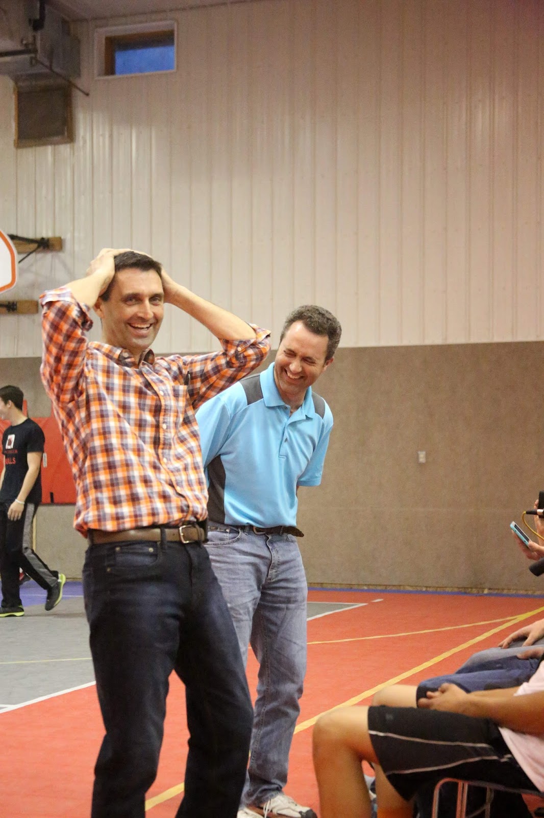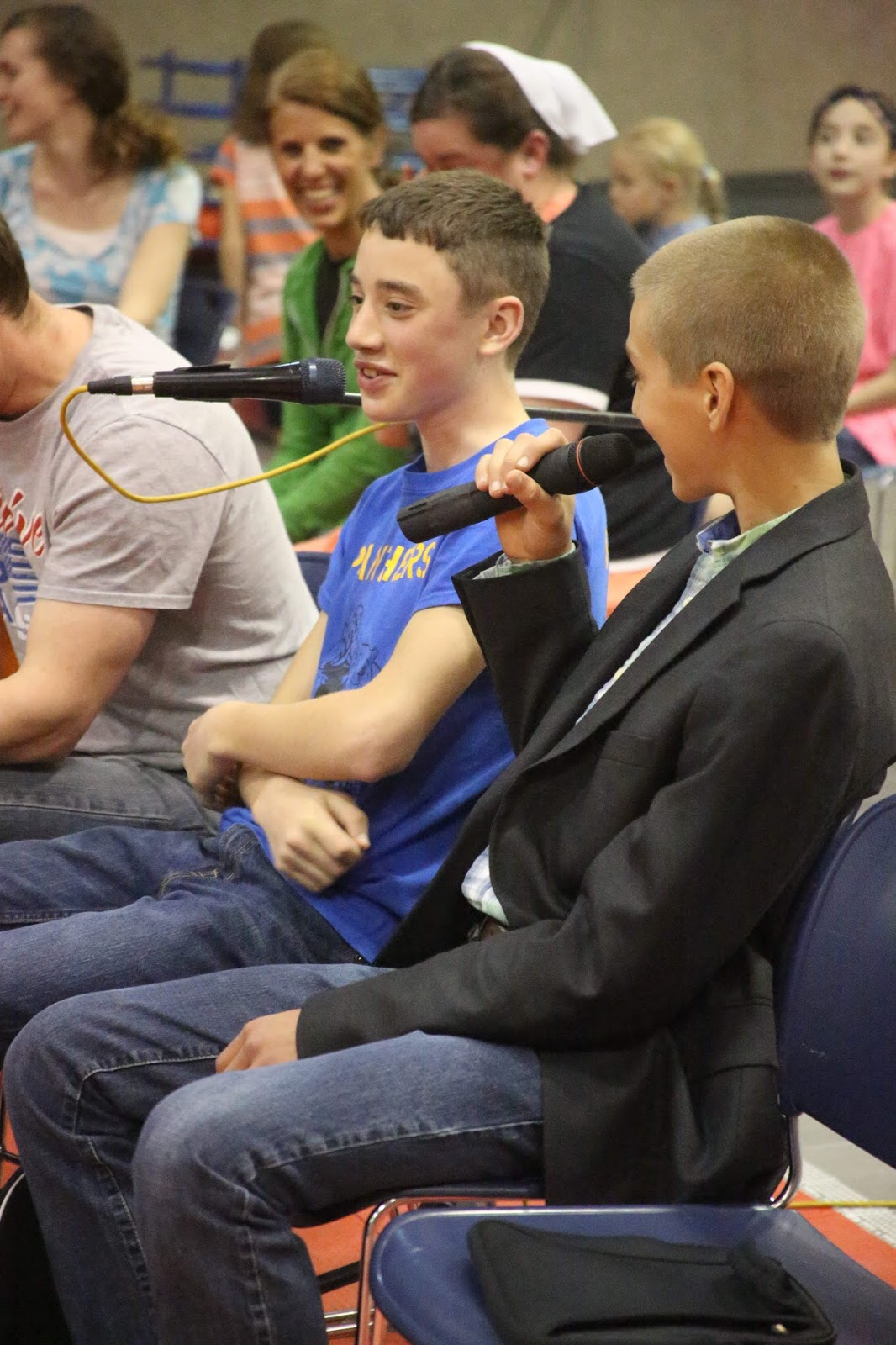 Saturday night found us back in the gym for the grand finale of the basketball tournament. You can see the two announcers there with their mics. Those guys haven’t listened to/watched hours of games for nothing. Their announcer impersonations were epic. =)