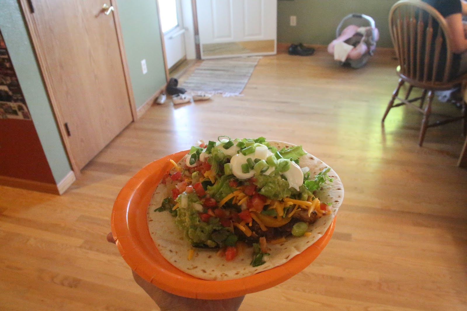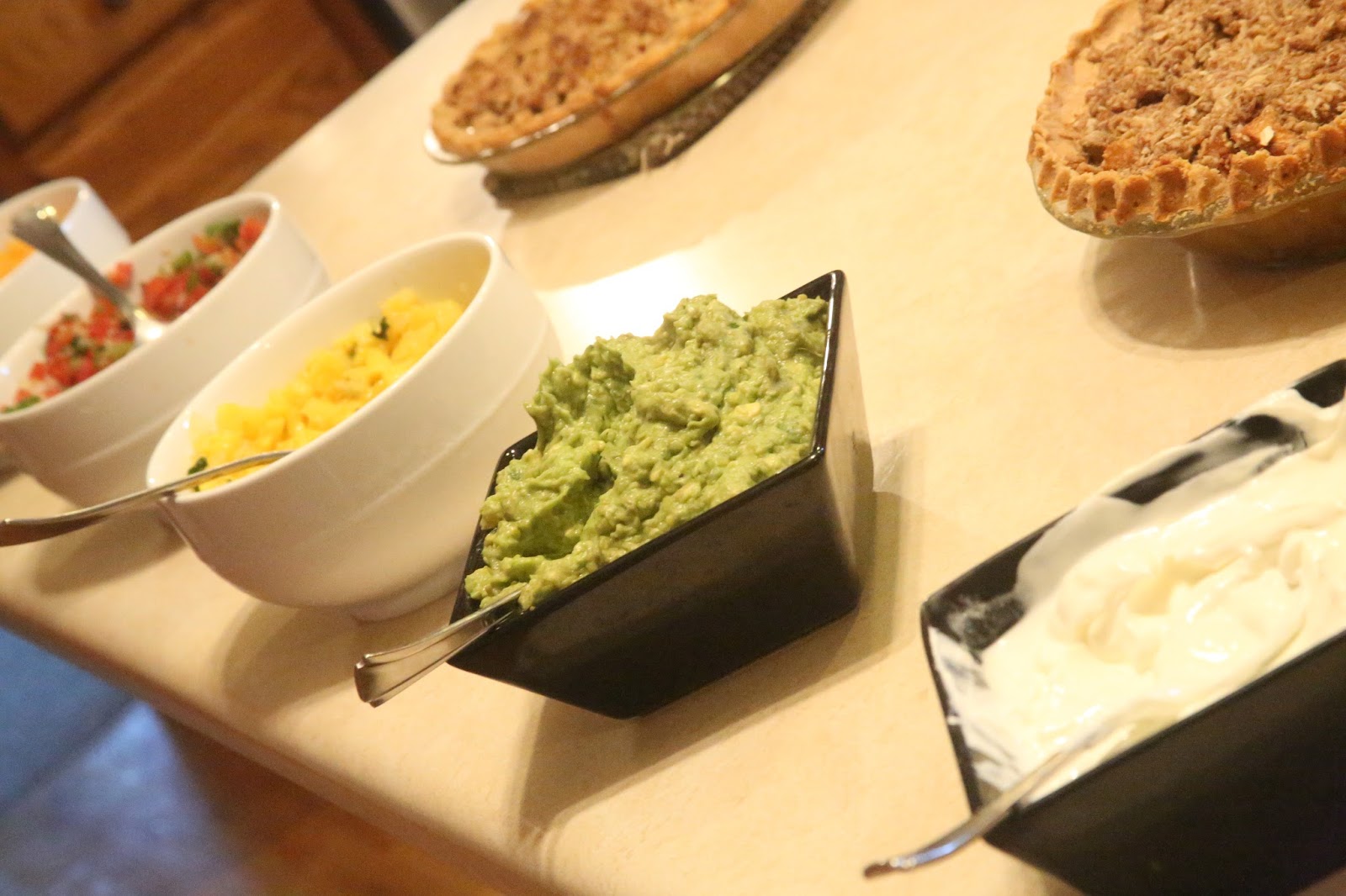 Pineapple/mango salsa, regular salsa, guacomole, and sour cream were just a few of our toppings.