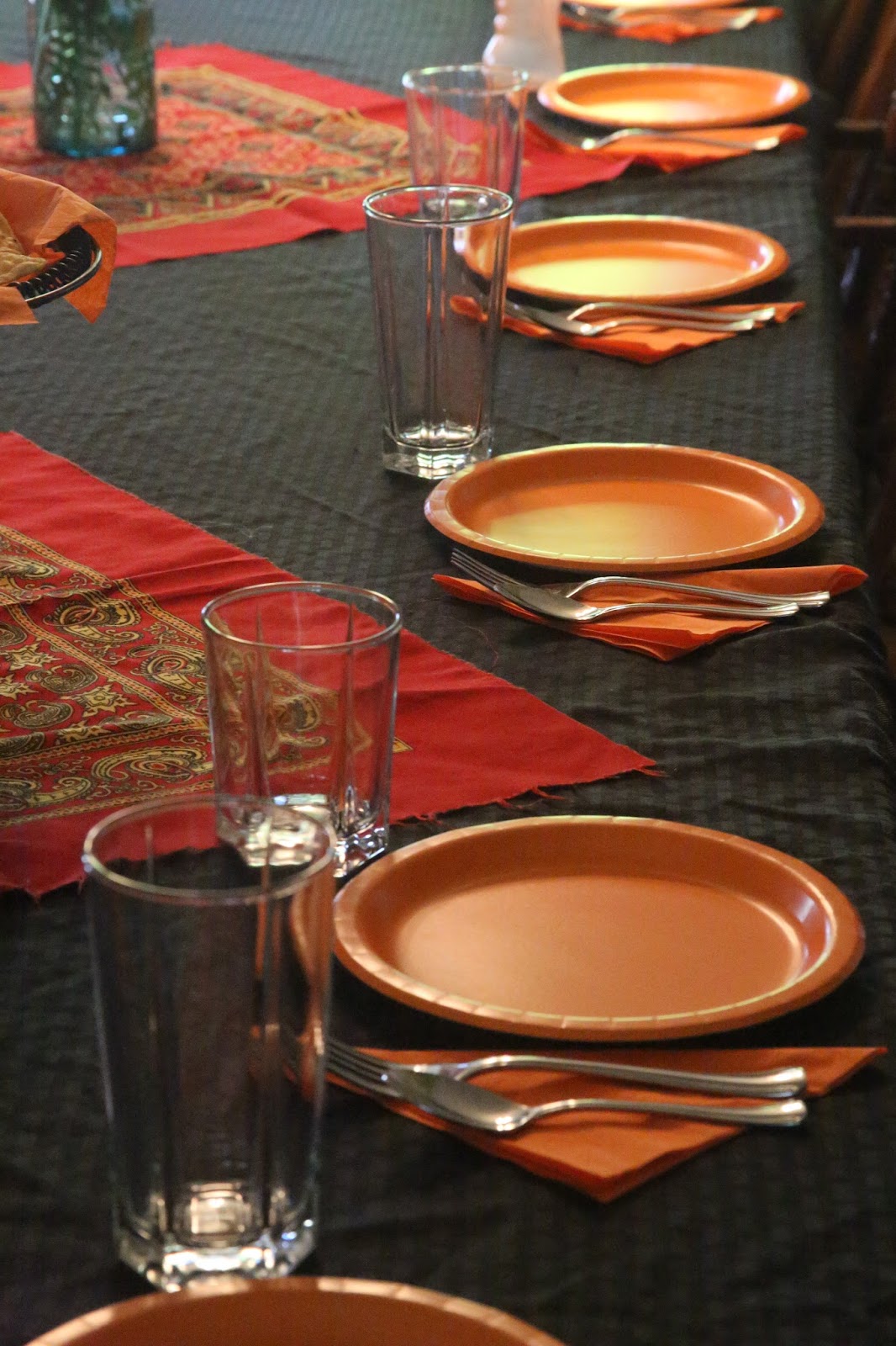 Since it was such a small party, we were able to have it right in the house. We big multi-colored linens Mom had picked up at a market in Mexico, and orange as the theme color.