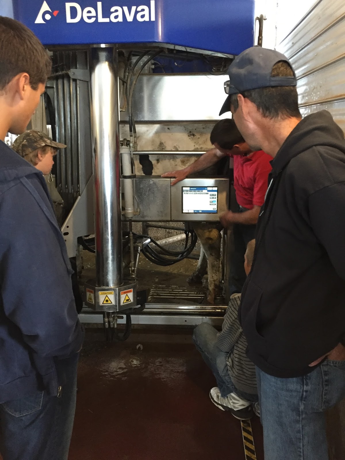 Checking out the amazing robotic milking system. Farmers always love to see how other farmers do it. =) This was super interesting to all of us.