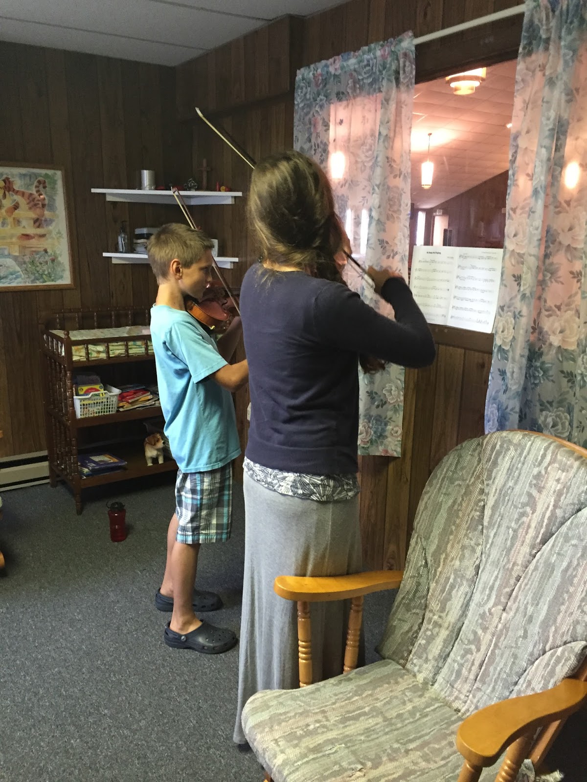 Practice, practice, practice…Hudson + Allison during a violin lesson in a church nursery in Maryland.