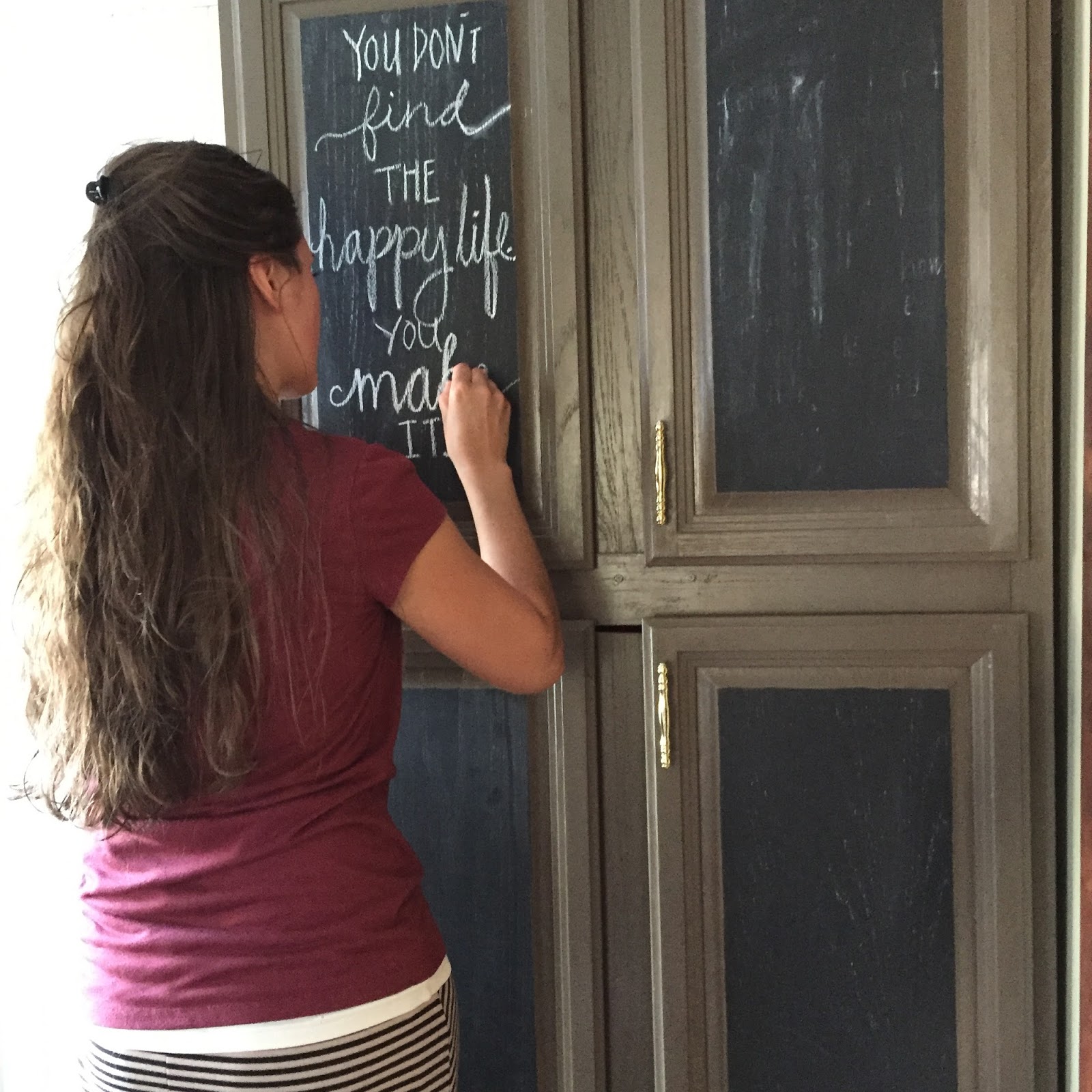 Allison scripting quotes and verses on my aunt’s cupboards.
