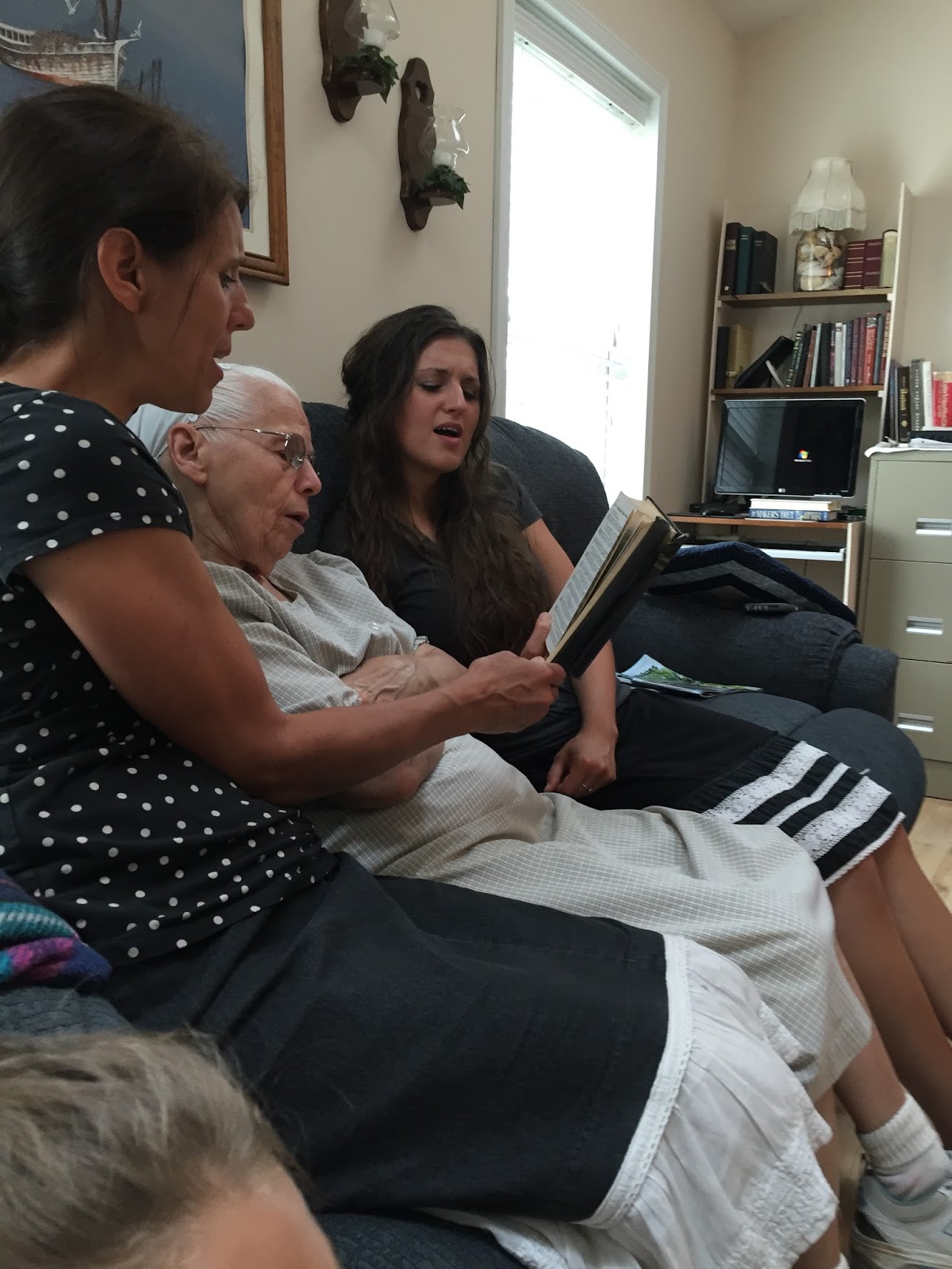 Sitting around in Grandpas’ living room singing hymns on our last morning there.