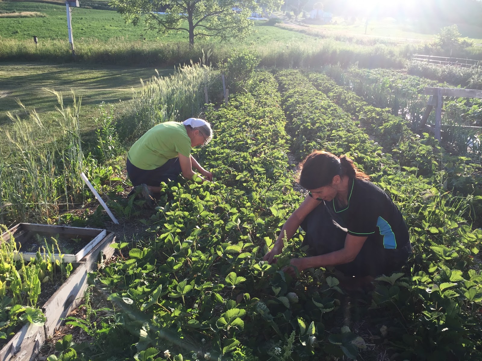 Strawberries were in season while we were visiting which meant that we got to help pick!