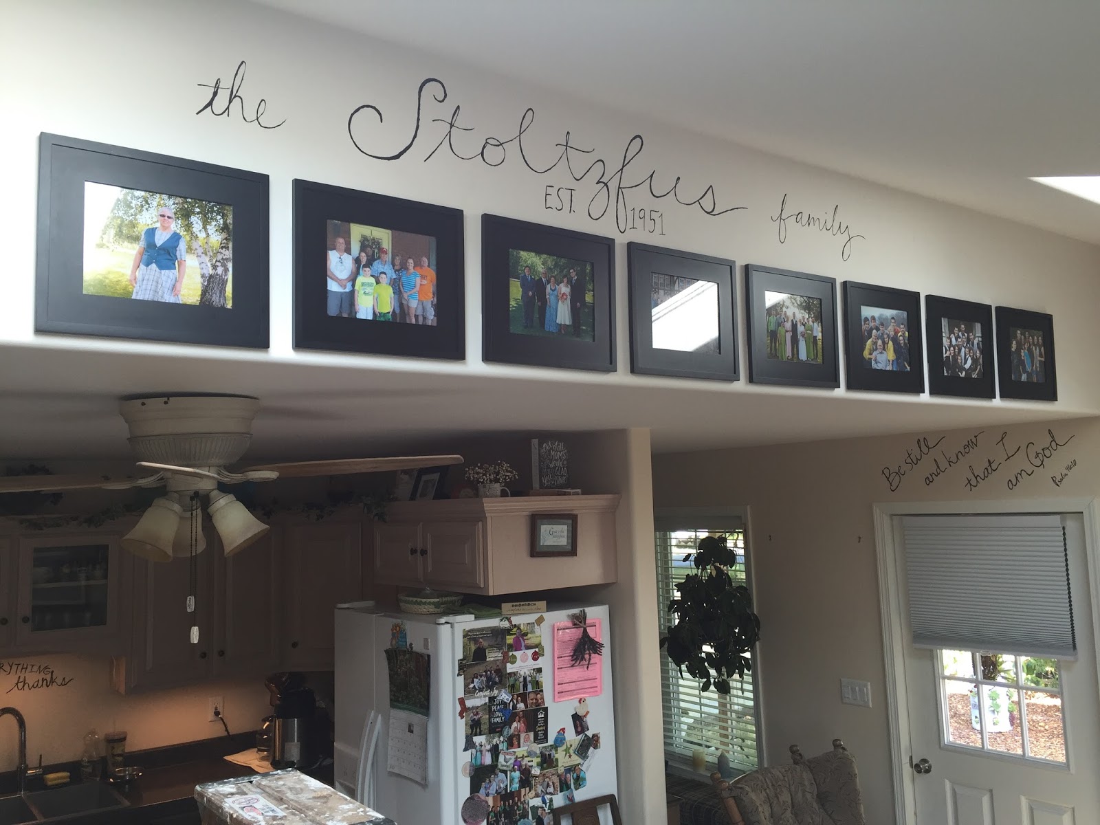 Allison has done a number of painting projects at our grandparents’ new house. This time Mitchell put up family pictures for all of the families and Allison painted above them.