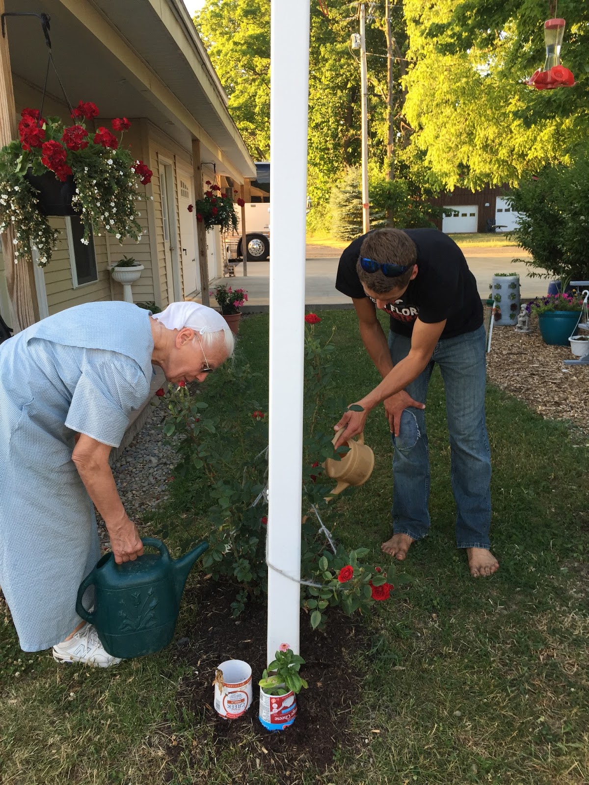 We enjoyed the opportunities to work and help out with projects around my grandparents’ home. Above, Mitchell helping Grandma with her roses.