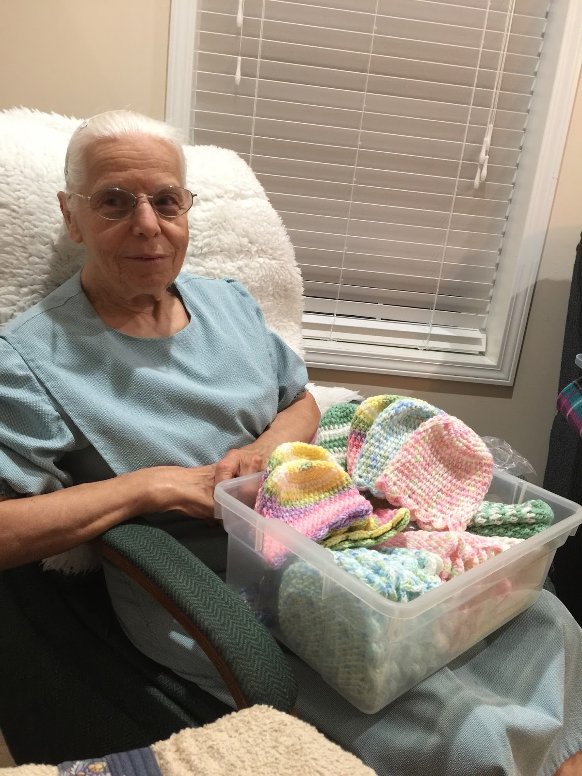 My grandma is an amazing woman. Eighty-five and still going strong with a heart to help others. She crochets hundreds of baby hats every year and gives them a hospital to be given to immigrants babies.