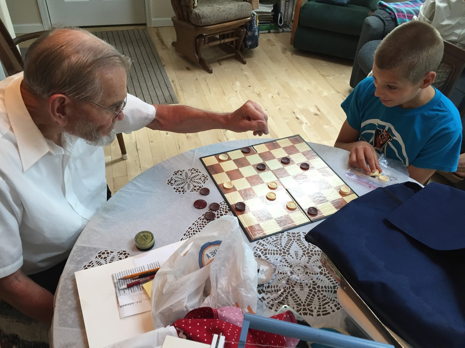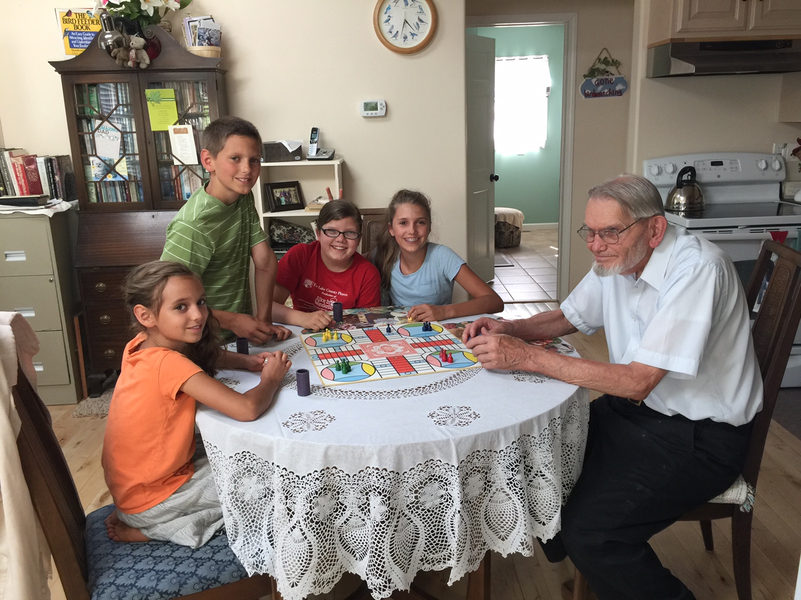 Some of the cousins playing Parcheesi with Grandpa. This game is a family favorite!