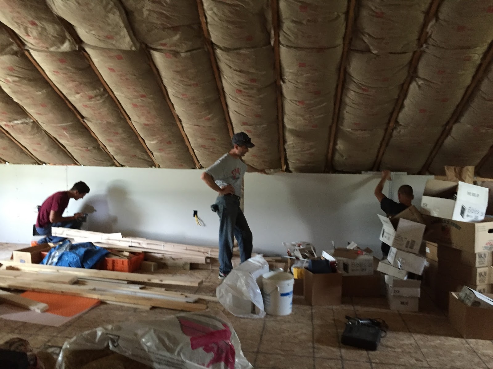 The guys worked on the guest bedroom and rec room above grandpas’ garage.