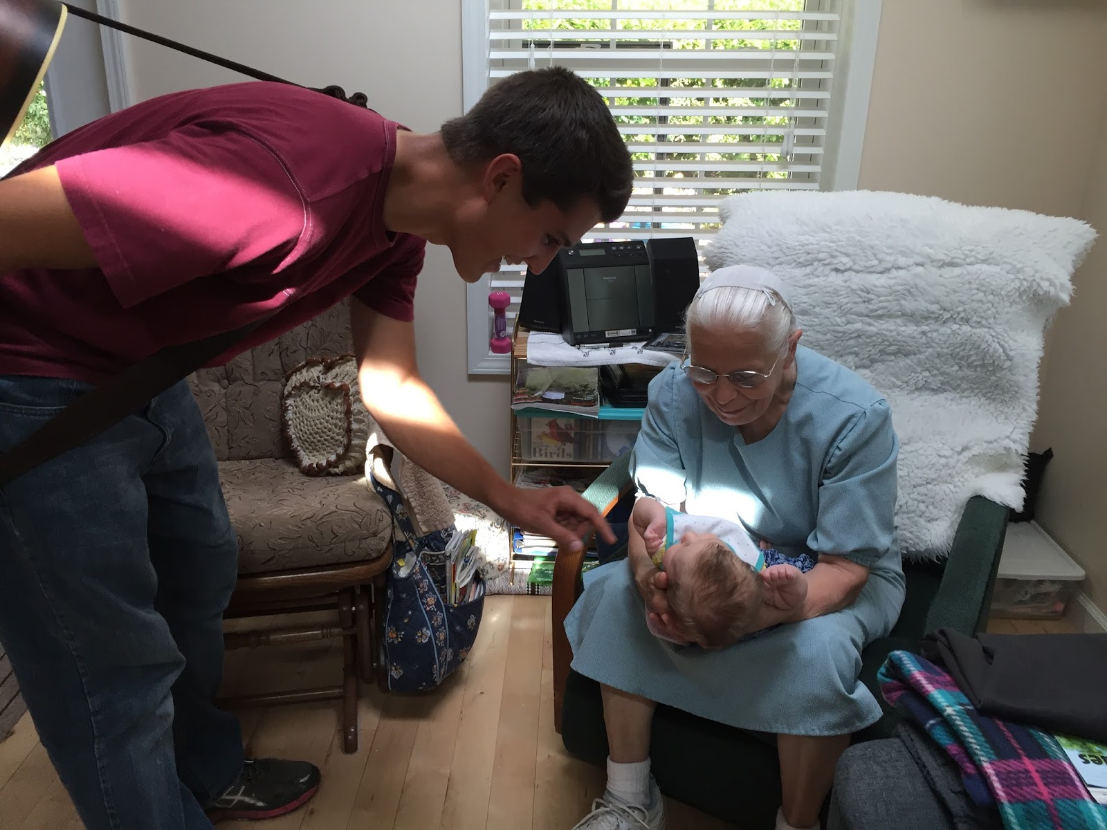 Josh + Grandma chatting it up with baby Emma. She is grandma’s eighteenth great-grandchild!