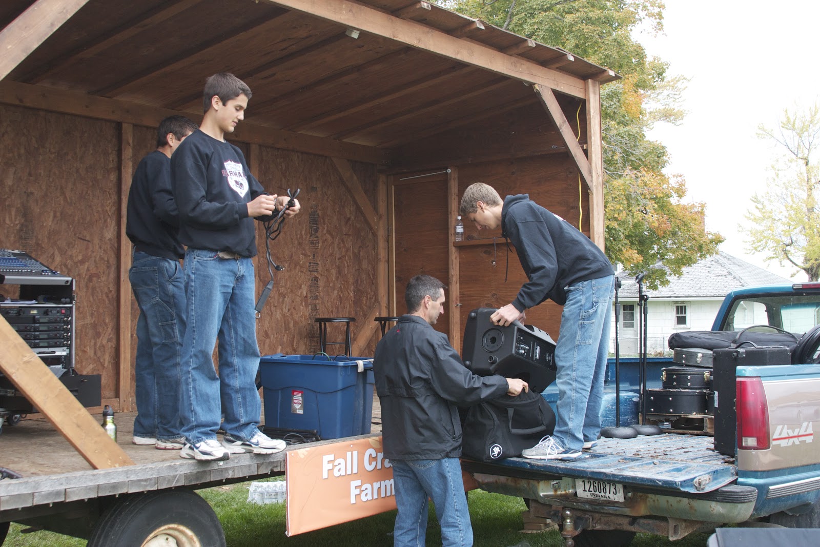 We spent Thursday-Saturday in Shipshewana at the Crafters Fair & Bluegate Theater. This was our 3rd year there and once again was a busy time of waking up, eating, setting up, singing, tearing down, eating, setting up, singing, tearing down (all that outdoors)….and then moving all the equipment & instruments inside to the theater and doing the whole process over again. It was a crazy three days but a great time, as always.
