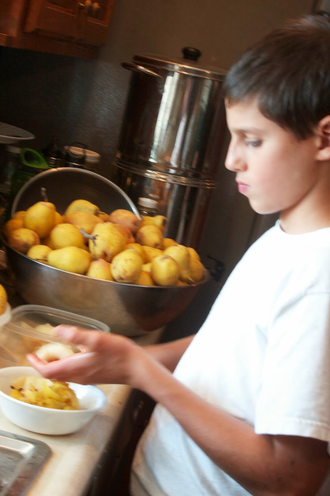 We have been loving pears and apples of late! They surely do make for some yummy cookin’; we’re been enjoying stewed apples, apple cake, apple danish bars, apple pie, dried apples, pear puffed pancake, apple pancakes, etc.