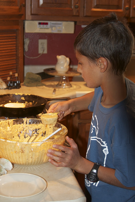 We’ve been teaching our young men to be bachelors. Well, not really…but they’re being prepared! Denver makes the most scrumptious pumpkin pancakes…