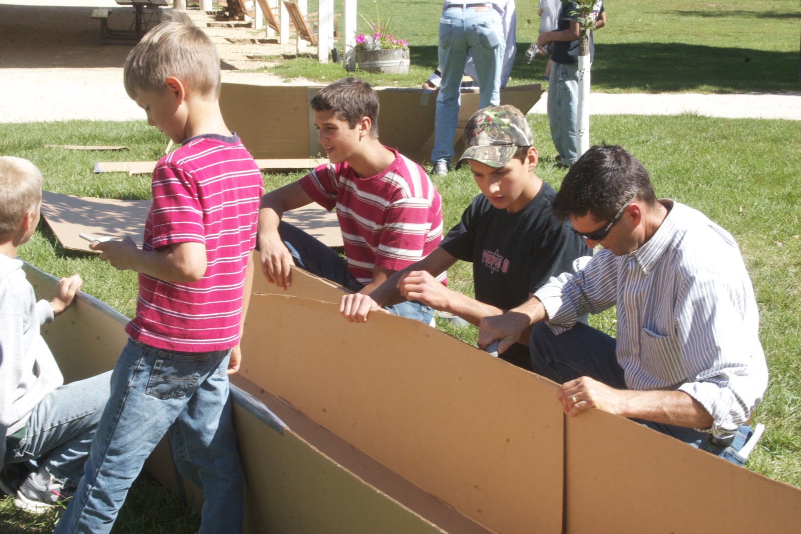 Are those cardboard boats? :)I bet it took some skill to construct something that holds water.