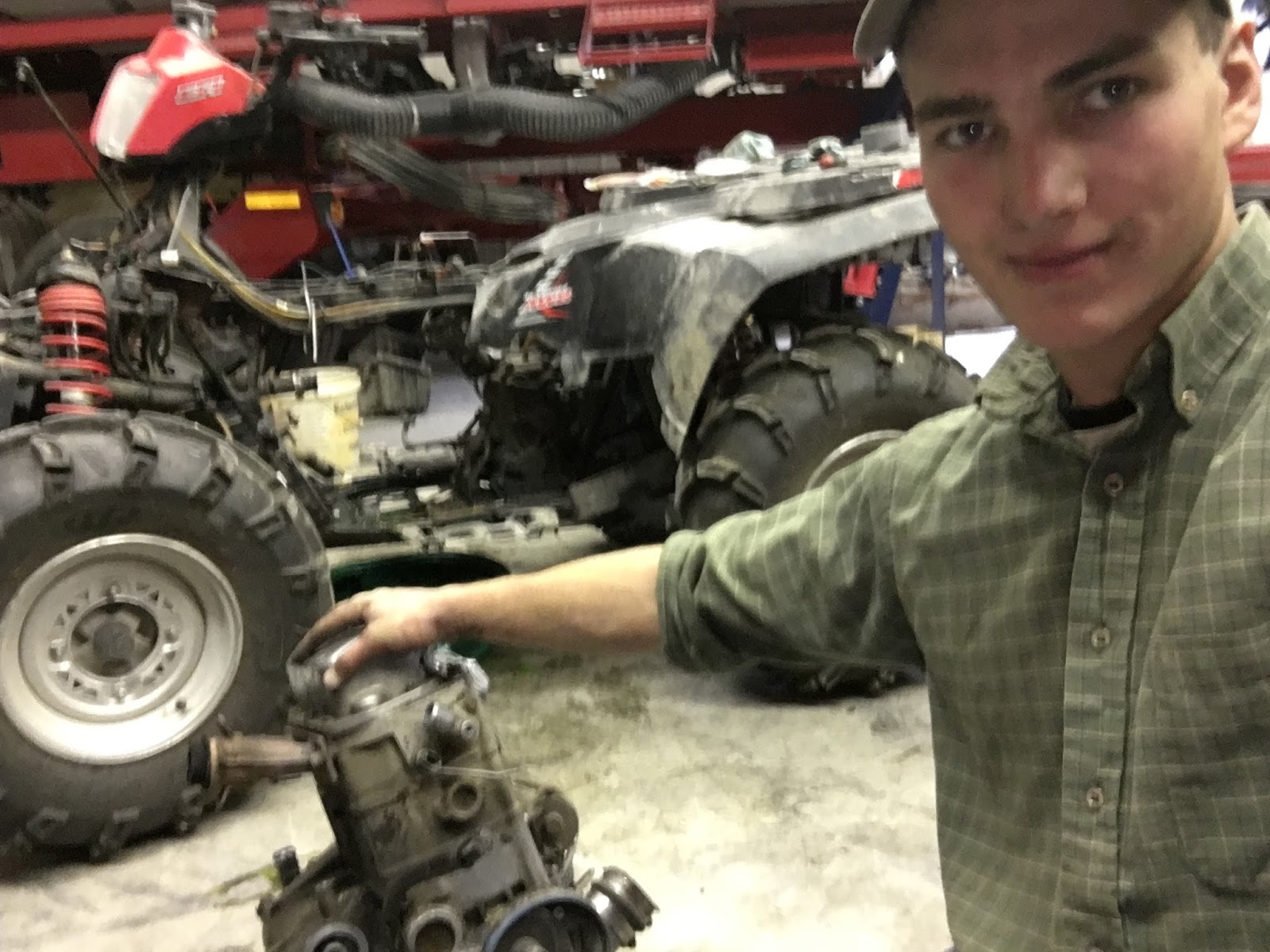 Carson, in his element. His hands are pretty much always stained with grease + oil. He loves it!