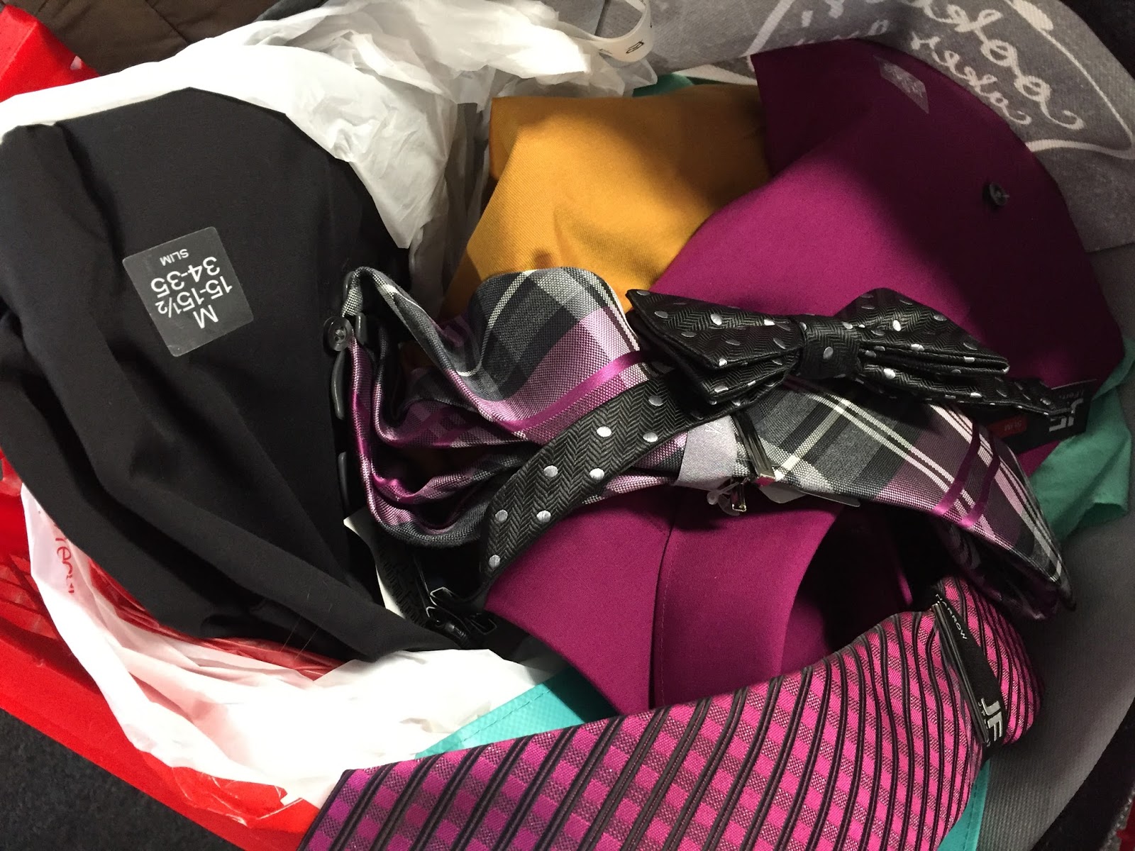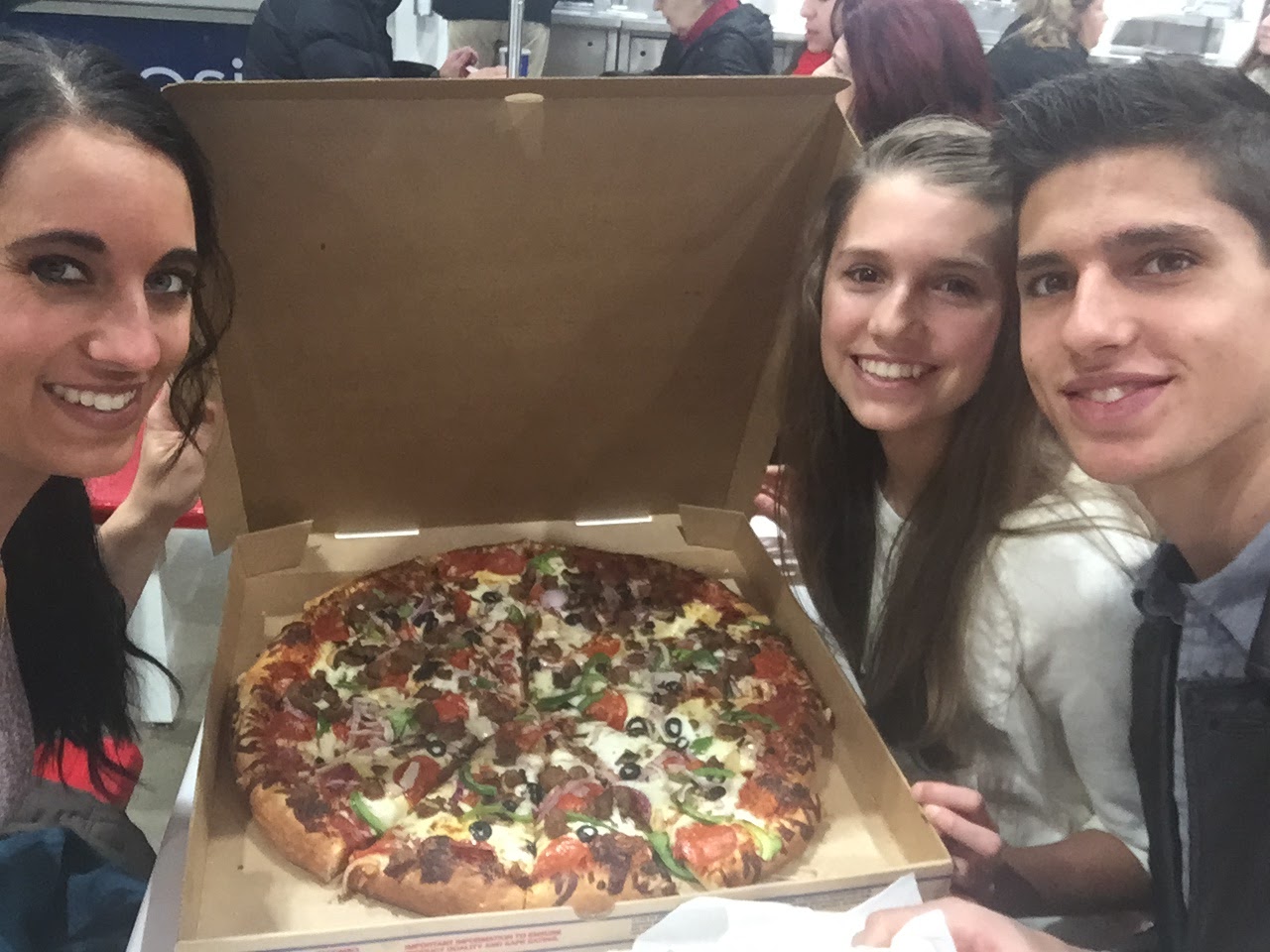 I spent a day on the town with my favorite co-stylists (Denver + Liz) selecting classy apparel for the band. We stopped for our weekly Costco run as well and grabbed lunch there. Costco pizza is the best…and Denver followed true Bontrager genes by figuring out that it was much cheaper to buy one whole pizza than two slices apiece. =)
