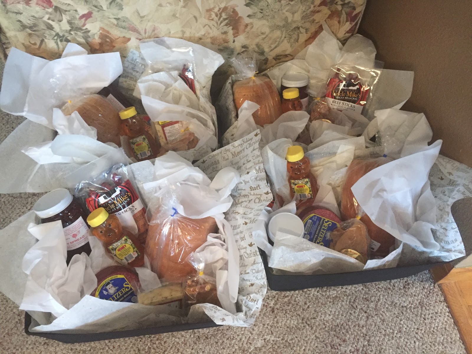 December means Christmas, and Christmas means gift baskets! We love giving gifts, and Allison + mom enjoyed doing gifts baskets + cooking projects for various employees and clients from Dad + the boys’ businesses. Above, a few baskets ready for delivery!