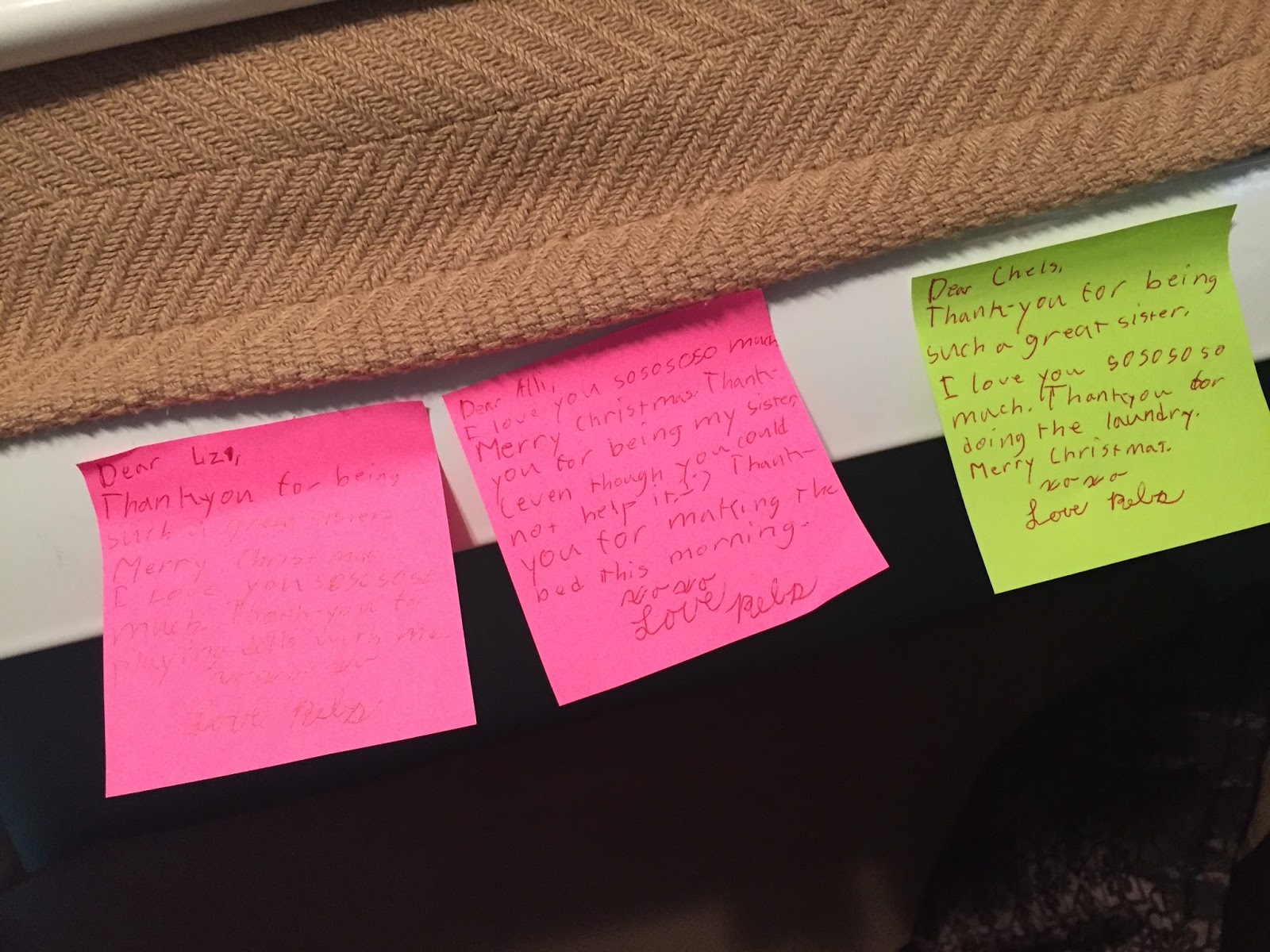 Rebecca left these notes for the rest of us girls on Christmas morning. Bless her heart!