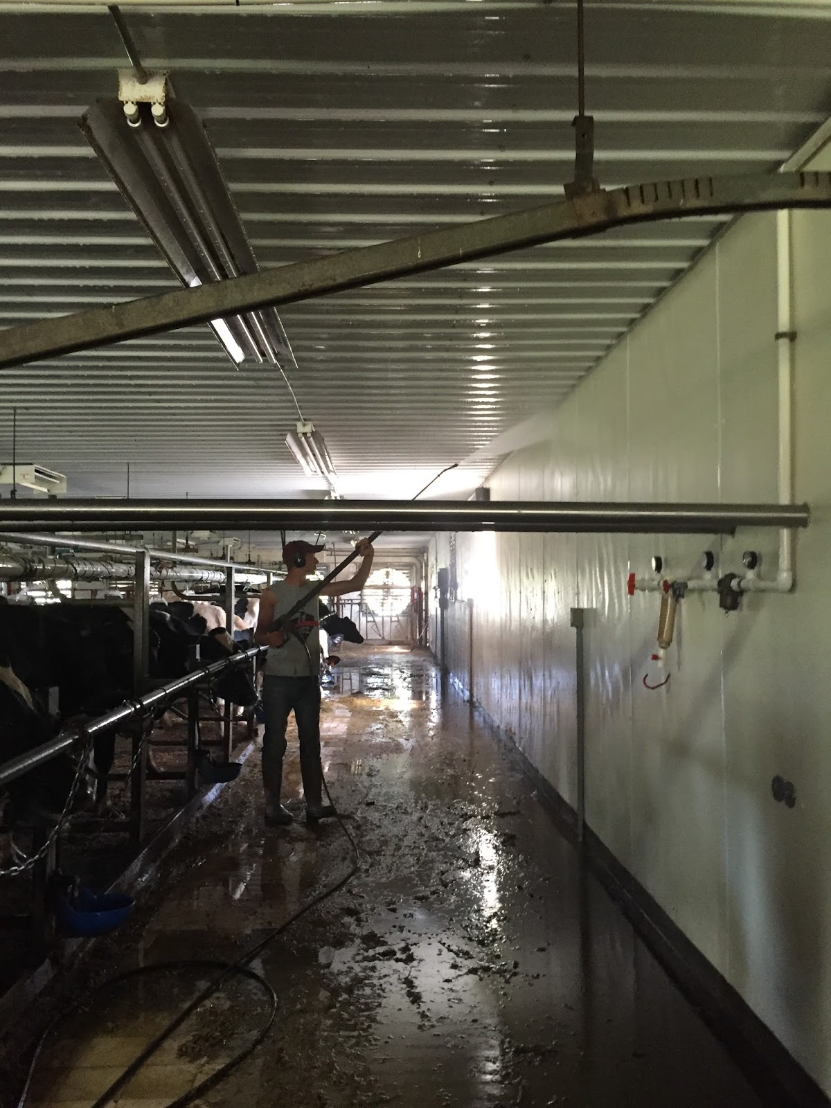 As always, the cows get milked twice a day, rain or shine. Here we have a smiling Taylor on the evening crew!