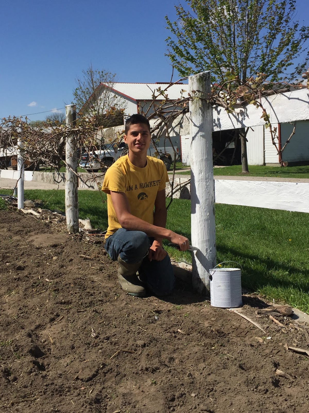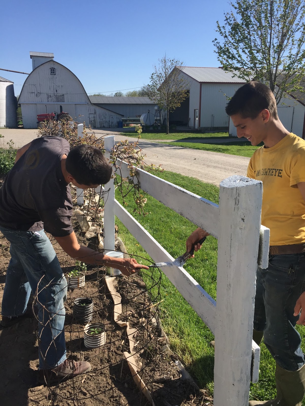 There are always an abundance of repair/maintenance projects on a farm, especially in the spring. The suggestion to finally repair this sagging/broken down grapevine fence was met with cheers by me. (the Mom + CEO of garden work)