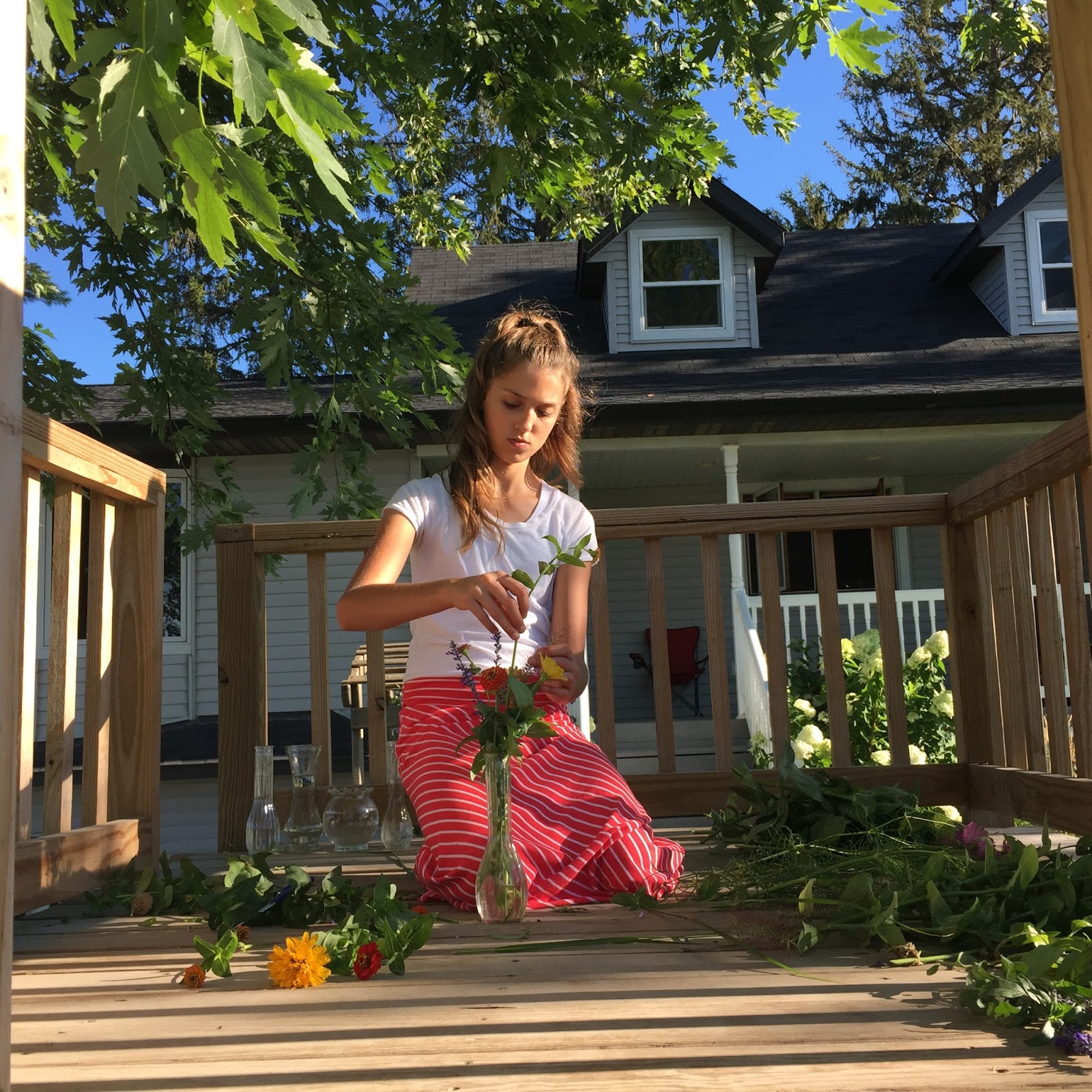 Liz arranging fresh bouquets from Allison’s flower beds.