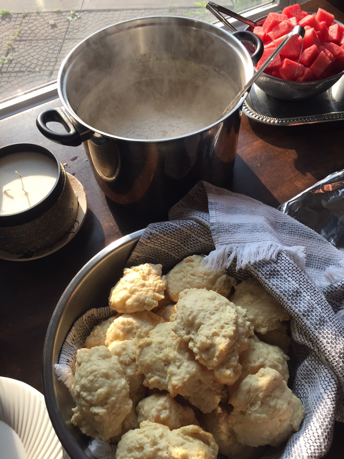I was privileged to be enlisted to make the biscuits + gravy for the gang. So fun to cook up an exorbitant amount for all these farm kids!