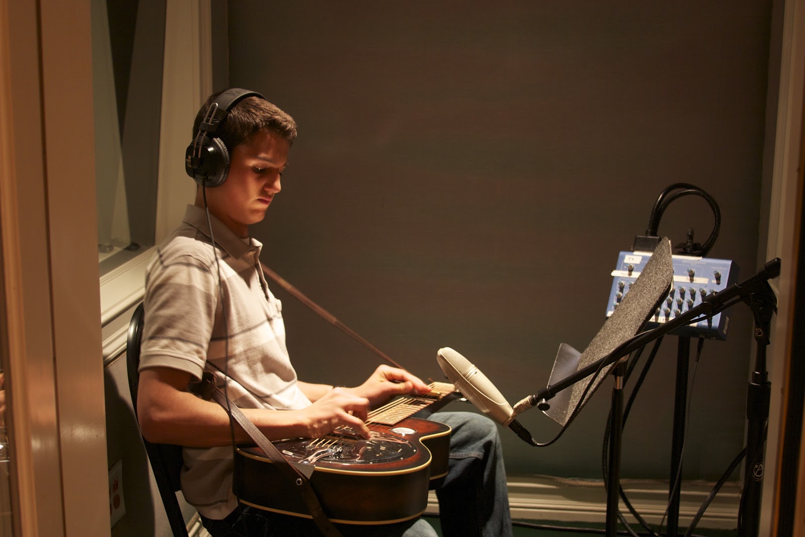 Mitchell worked super hard the first few days in studio. He put in some LONG hours playing guitar or banjo (or both) on every song but one!