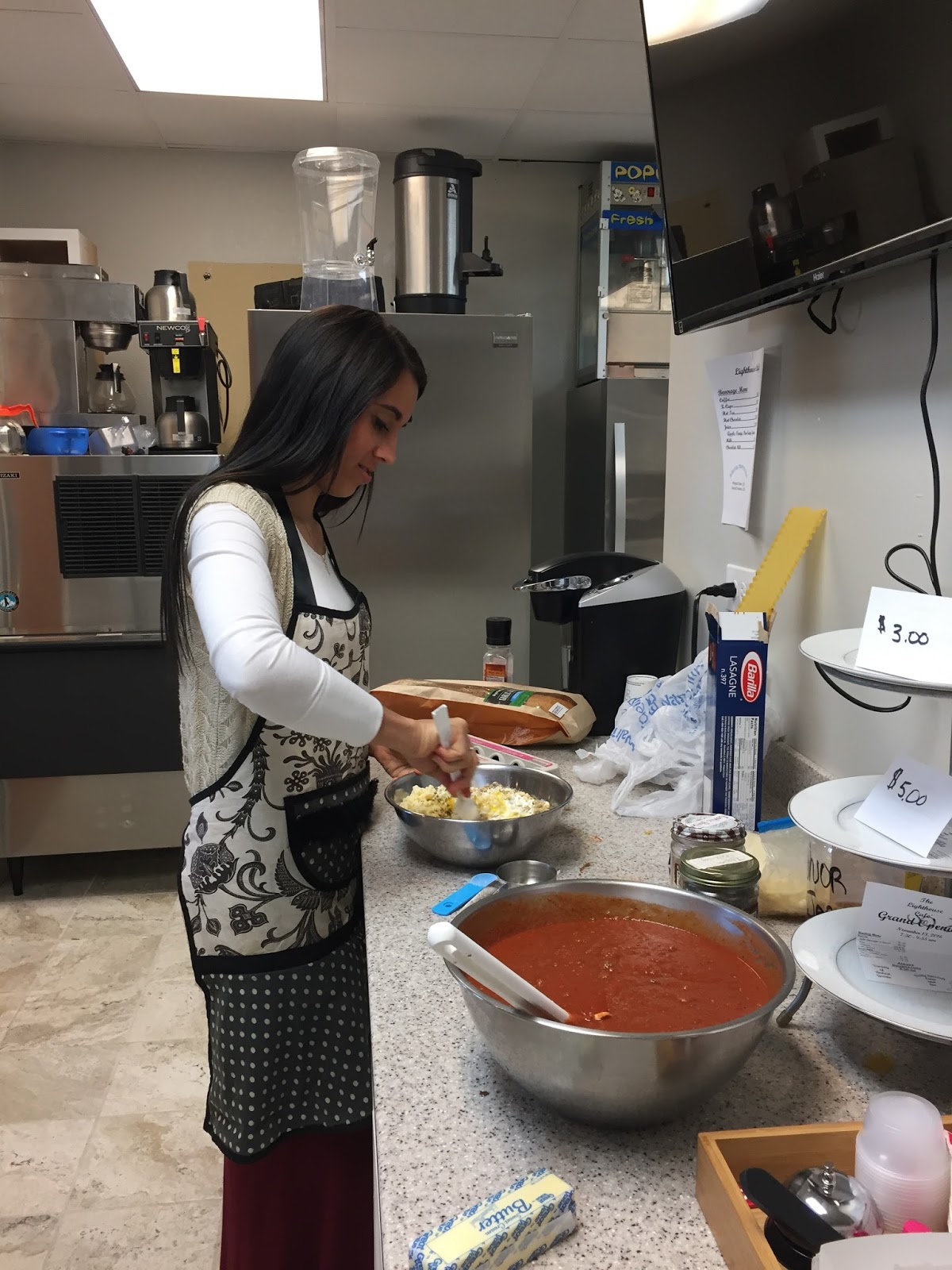 Cooking up an Italian storm a church kitchen.