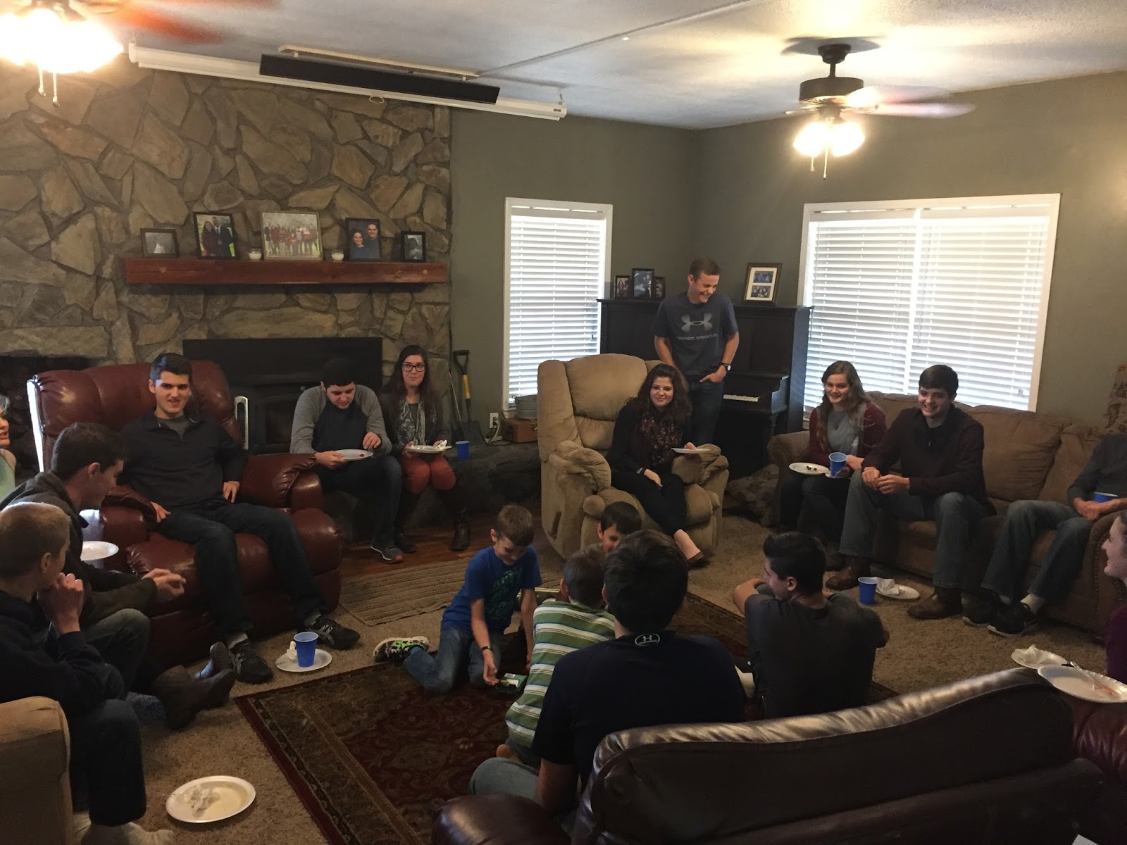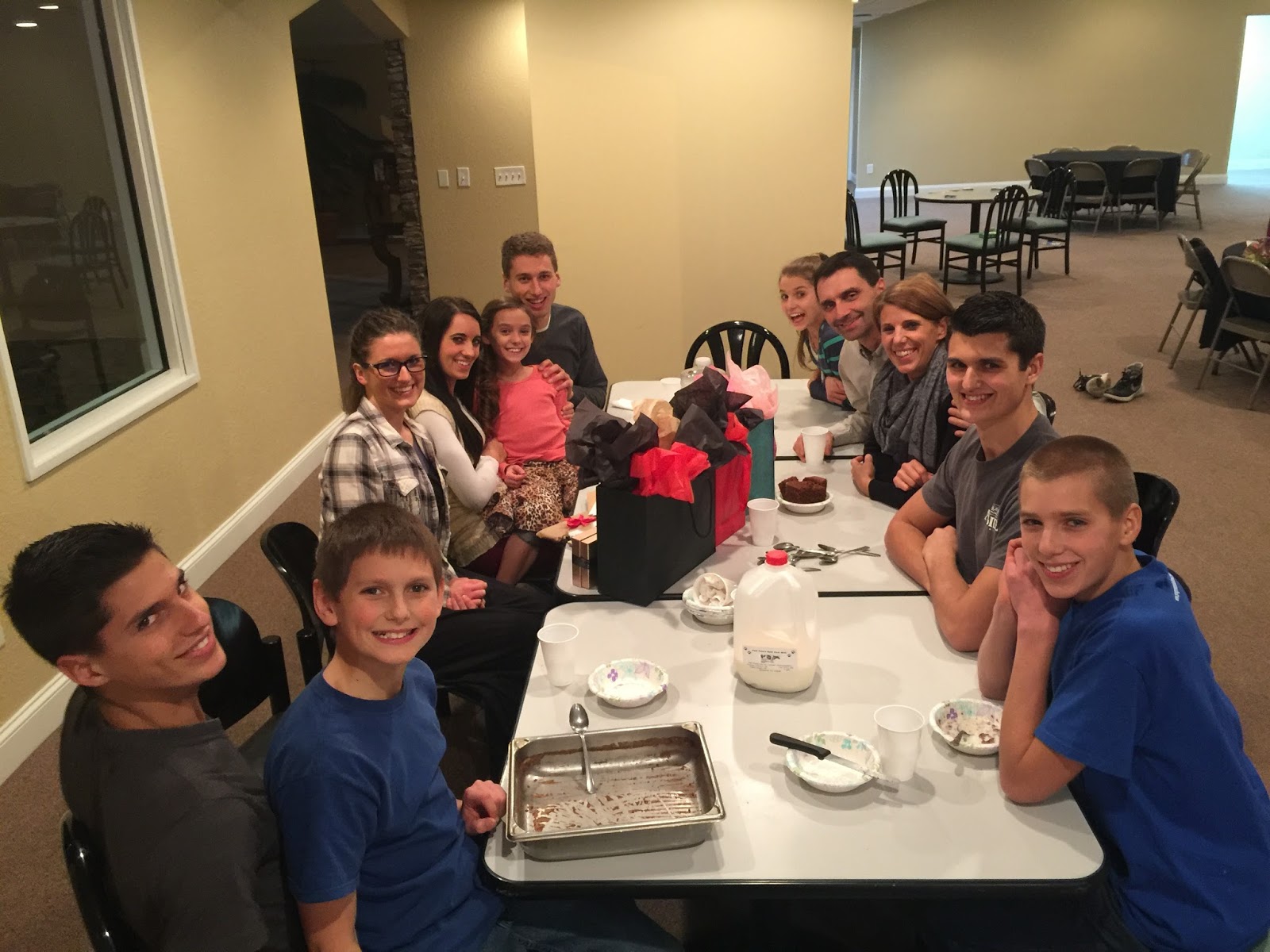 Birthday celebration time! (this would be post-food, pre-gifts, as evidenced by the empty cake pan)