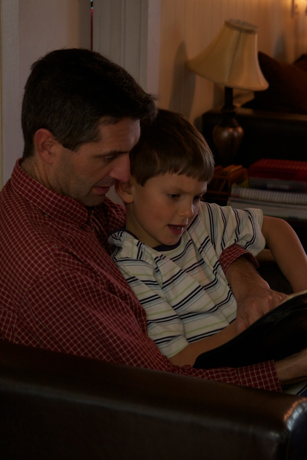 (above, Hudson taking his turn reading the Bible during family devotions)
