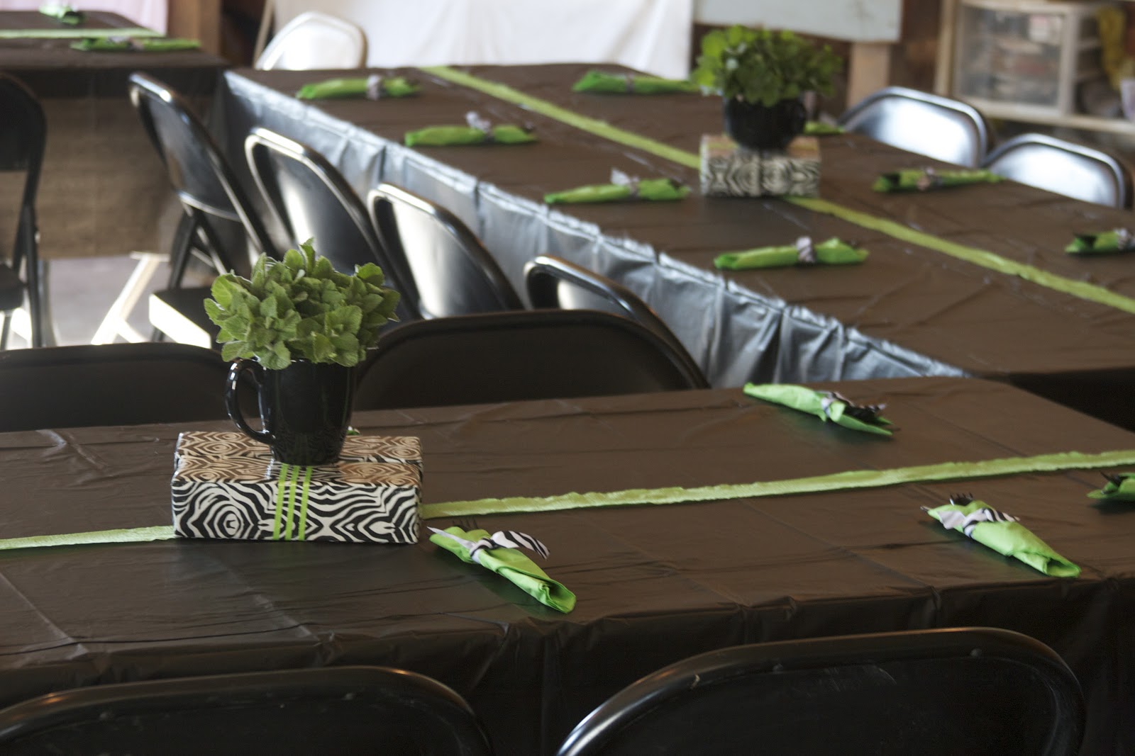 the centerpieces were black mugs filled with spearmint tea bunches from our garden.