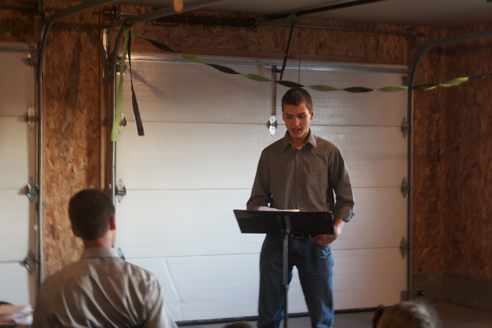 Our pastor giving a special “charge to adulthood” for Joshua.