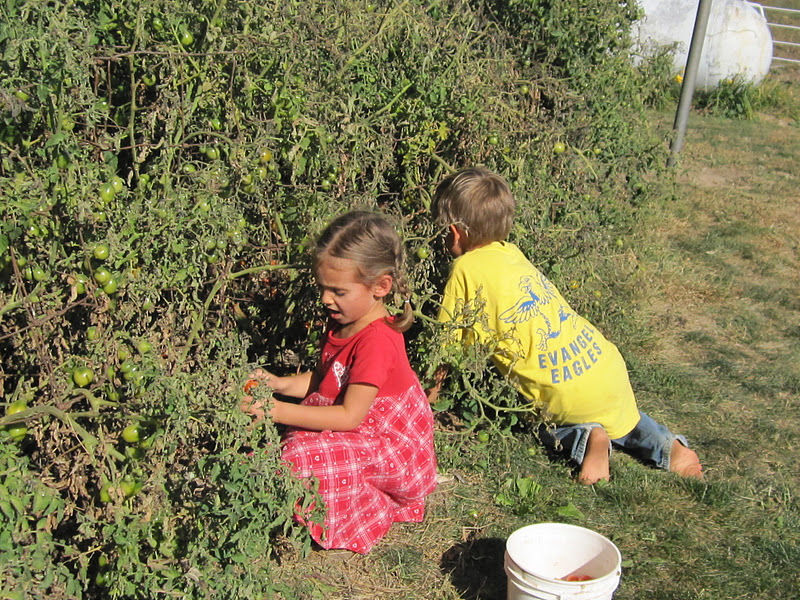 We have some lovely cherry tomatoes still producing in our garden. The little ones love to pick as long as they can eat while they work. 🙂