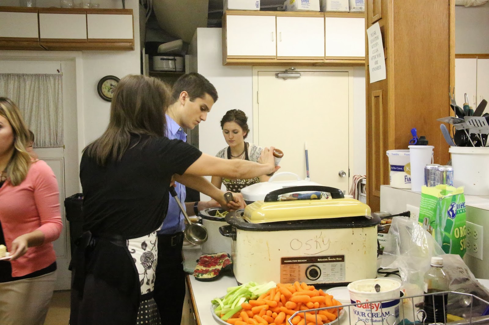 A few weeks ago, our Pastor was talking about the $$ needed for all the expenses of the Live Animal Christmas Play (see pictures of last year here). Our dear mother had the idea of a fundraiser dinner, and after some planning and {just a little:)} cooking, it happened! The menu was cheesy ham + potatoes, green beans, salad, dinner rolls, veggies, and chocolate cheesecake, vanilla cheesecake, or apple cake for dessert.