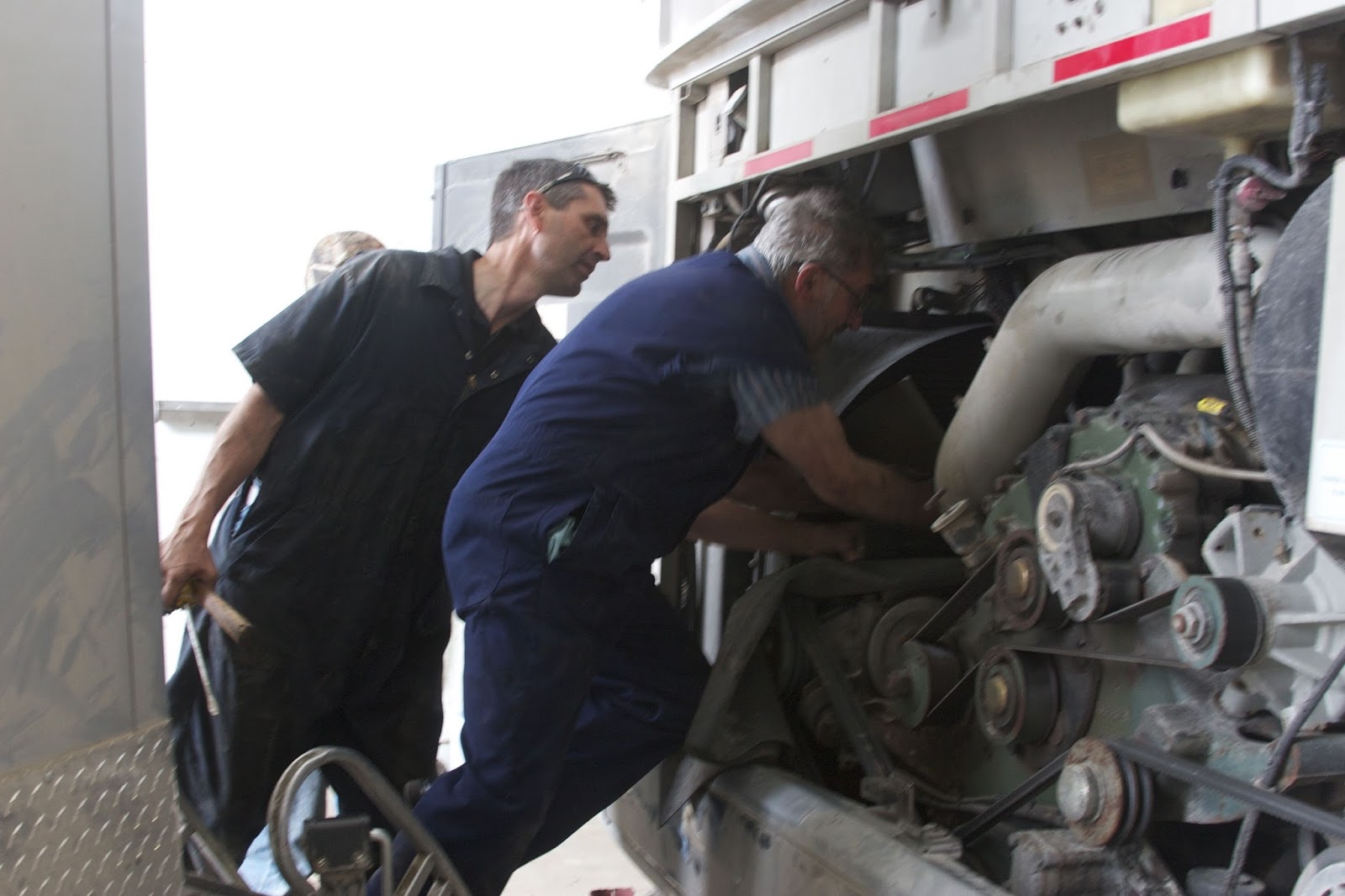 While giving our bus an inspection & fixing a few minor things, the colony mechanics discovered a large hole in our muffler. They kindly took hours out of their day to get everything fixed and get us safely running again.