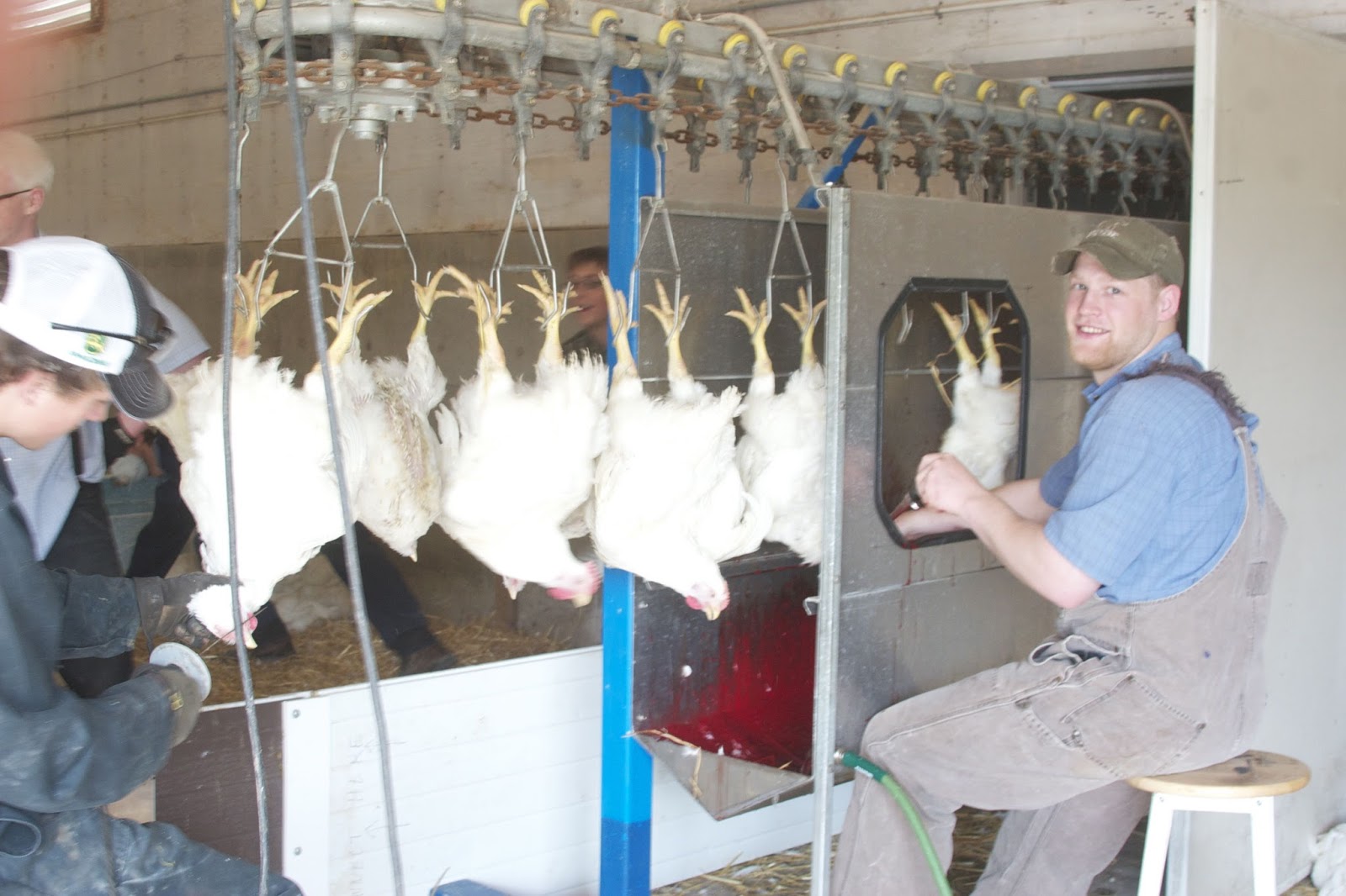 …And then Taylor and his friend William did the one of the lasts steps-hooked the chickens legs up beside the necks.