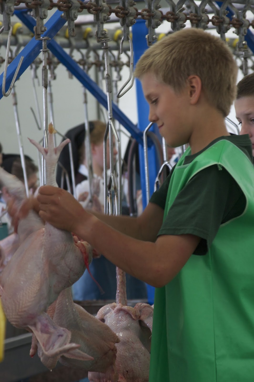 Mitchell had a cool job-he got to run this suction hose thing that cleaned out any “extras” still left inside the chickens. =)